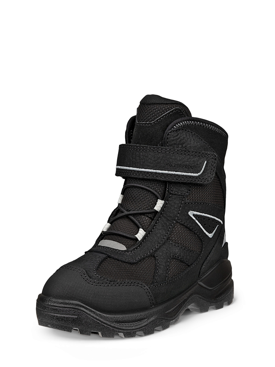 ECCO Snow Mountain er en funksjonell og komfortabel vinterstøvel til barn, utviklet for å tåle både kulde og aktiv lek ute i snøen. Den er laget i en kombinasjon av skinn og slitesterkt tekstil med praktiske refleksdetaljer som gir ekstra synlighet. Innsiden har et mykt, varmt tekstilfôr som holder små føtter lune gjennom hele vinteren, mens en vanntett membran uten PFAS sikrer at føttene forblir tørre selv i vått og krevende vær.