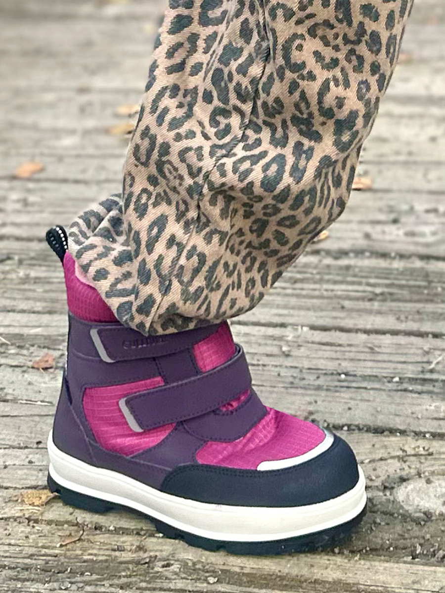 Vintersko til barn med vanntett Gore-Tex membran, borrelås og godt synlige reflekser.