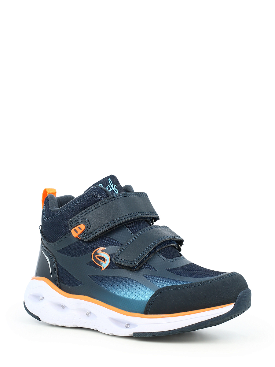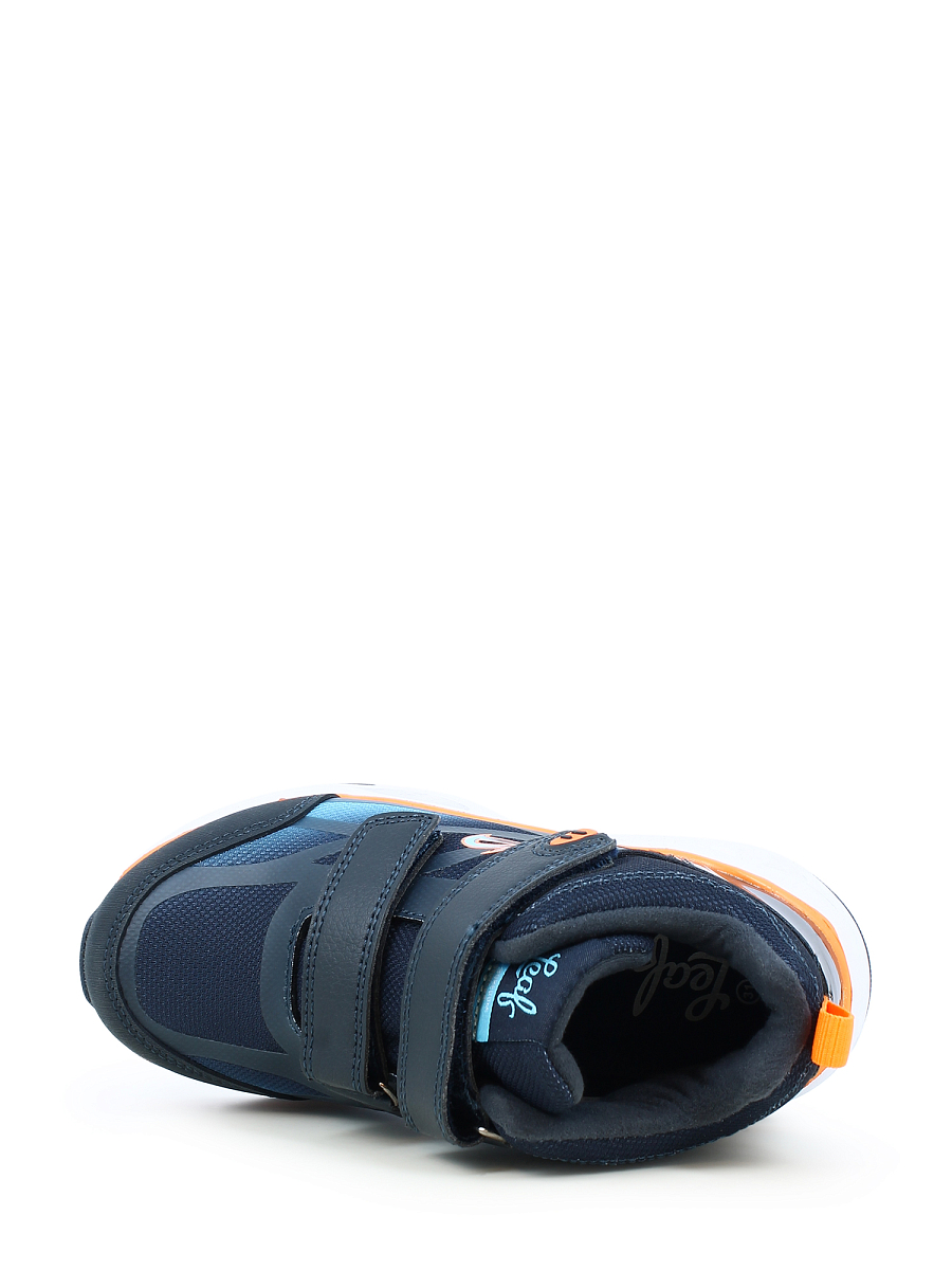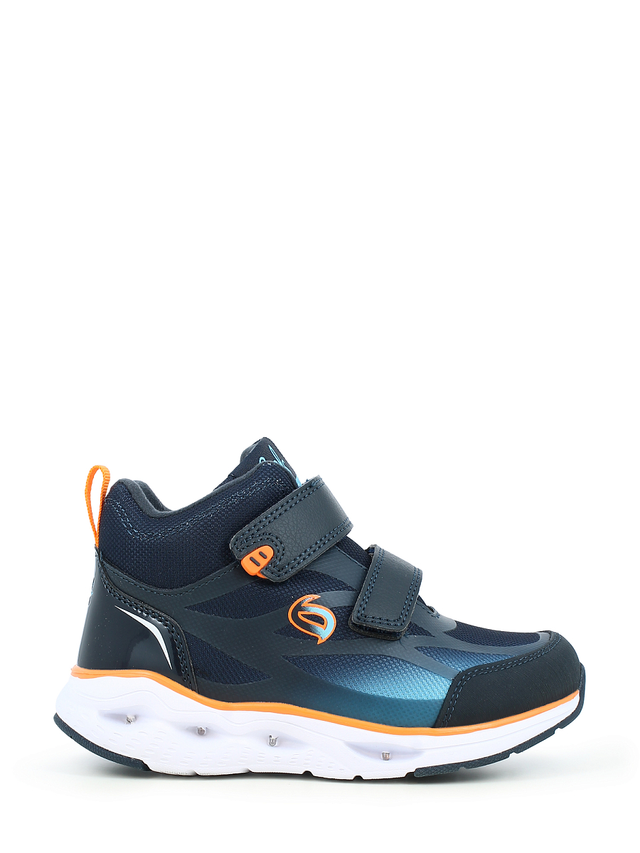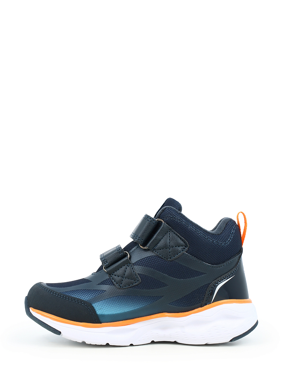 Leaf Magran Navy er en mellomhøy barnesko med sporty design, perfekt til lek og aktivitet gjennom dagen. Overdelen er laget i en slitesterk kombinasjon av nylon, polyuretan og gummi som gir både beskyttelse og støtte, mens mykt fleecefôr på innsiden holder føttene varme. Den doble borrelåslukkingen gjør skoene enkle å håndtere for barn, og den forsterkede tåhetten i gummi gir ekstra slitestyrke. I tillegg har modellen blinkende lys som gjør skoene ekstra morsomme å bruke.