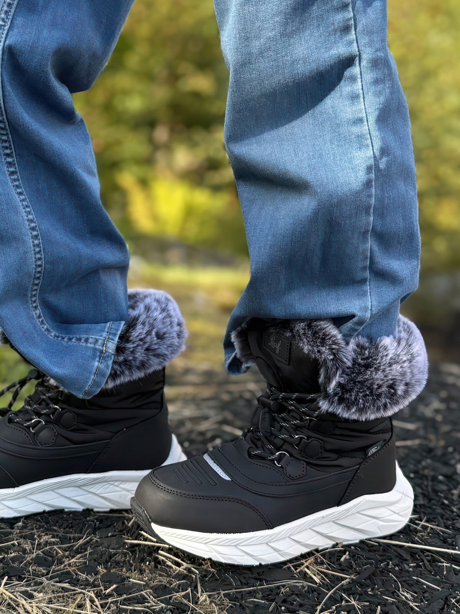 Leaf Solna Black er en robust og varm vintersko designet for å holde barnas føtter komfortable gjennom kalde vinterdager. Skoen har en quiltet høy overdel med ITC-teknologi som sikrer at føttene forblir varme. Deilig fôret og med imitert pelskrage, noe som gir ekstra komfort i kaldt vær. Elastiske snører gjør det enkelt å ta skoen av og på, samtidig som de gir en justerbar passform.