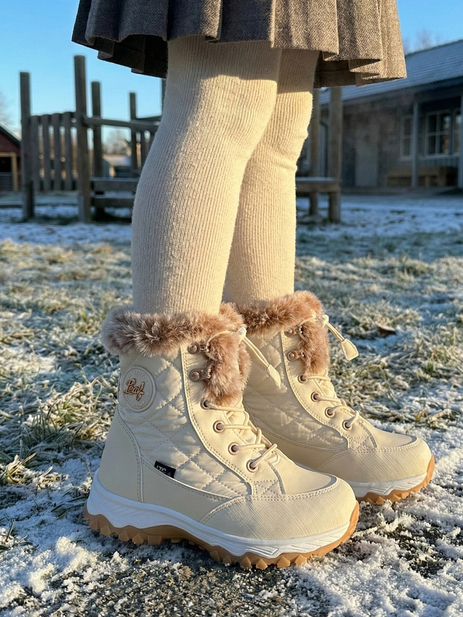 Leaf Visby er en robust og varm vintersko designet for å holde barnas føtter komfortable gjennom kalde vinterdager. Skoen har en quiltet høy overdel med ITC-teknologi som sikrer at føttene forblir varme. Fôret består av en ullblanding og en falsk pelskrage, noe som gir ekstra komfort i kaldt vær. Elastiske snører gjør det enkelt å ta skoen av og på, samtidig som de gir en justerbar passform.