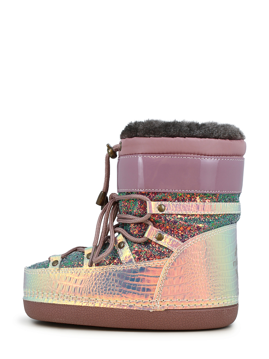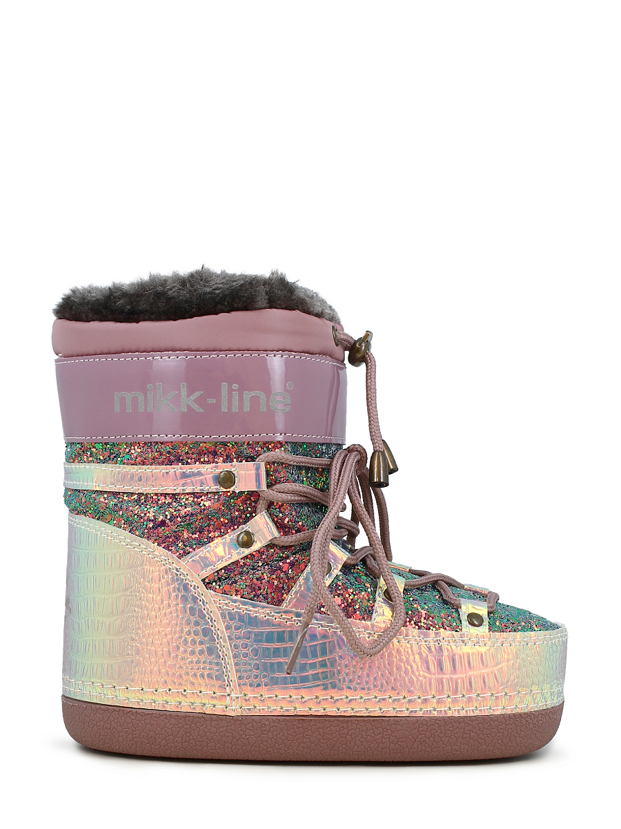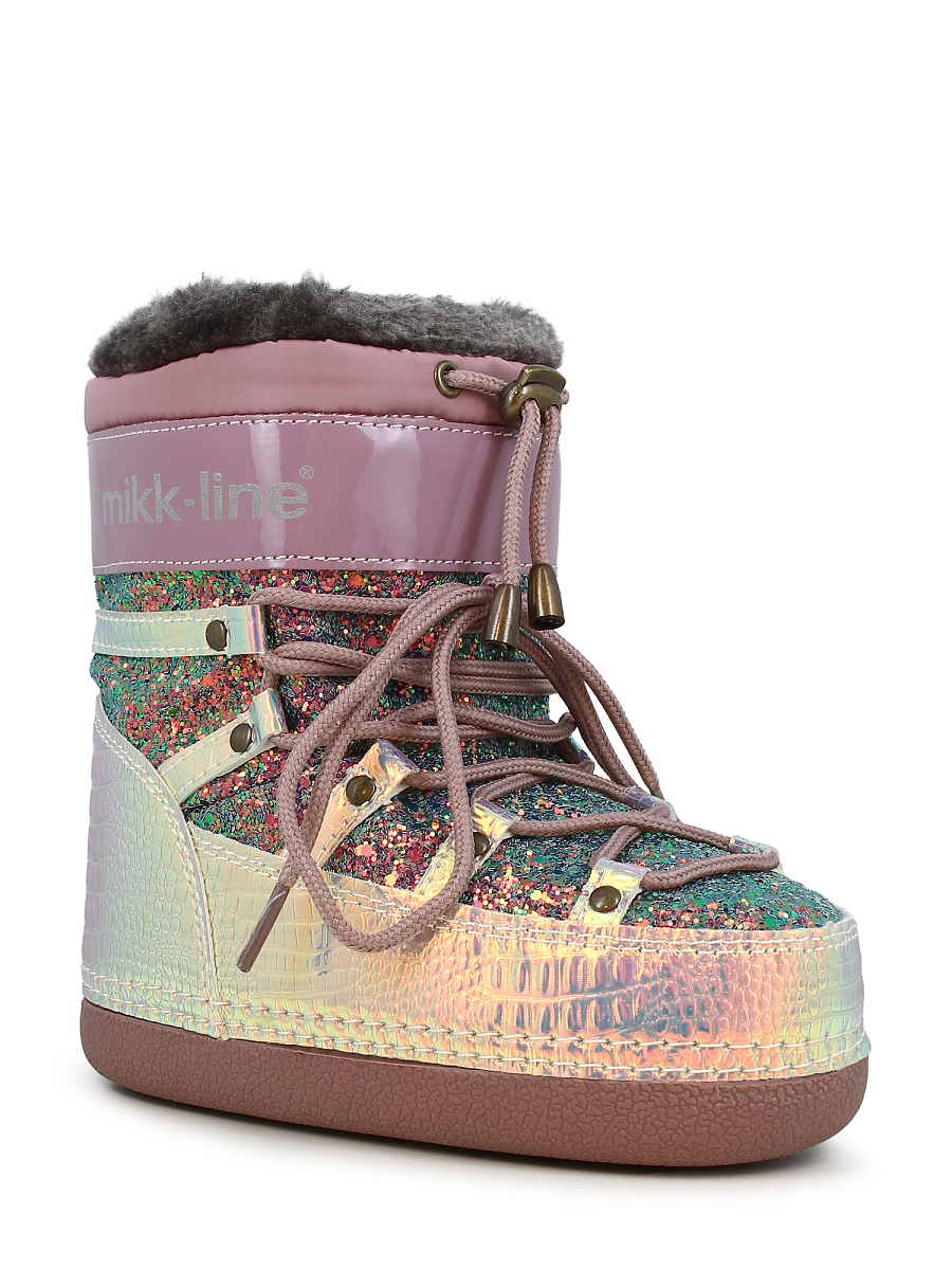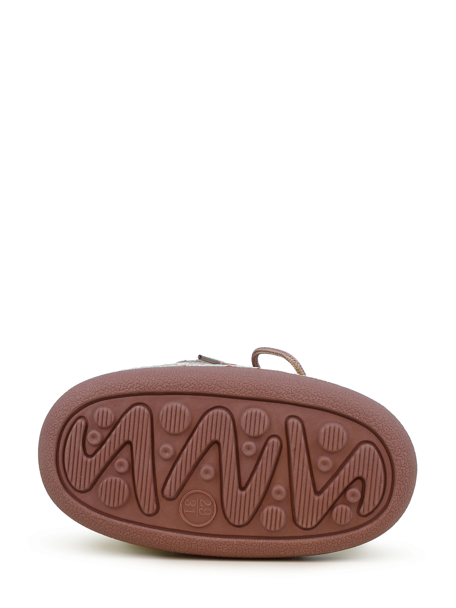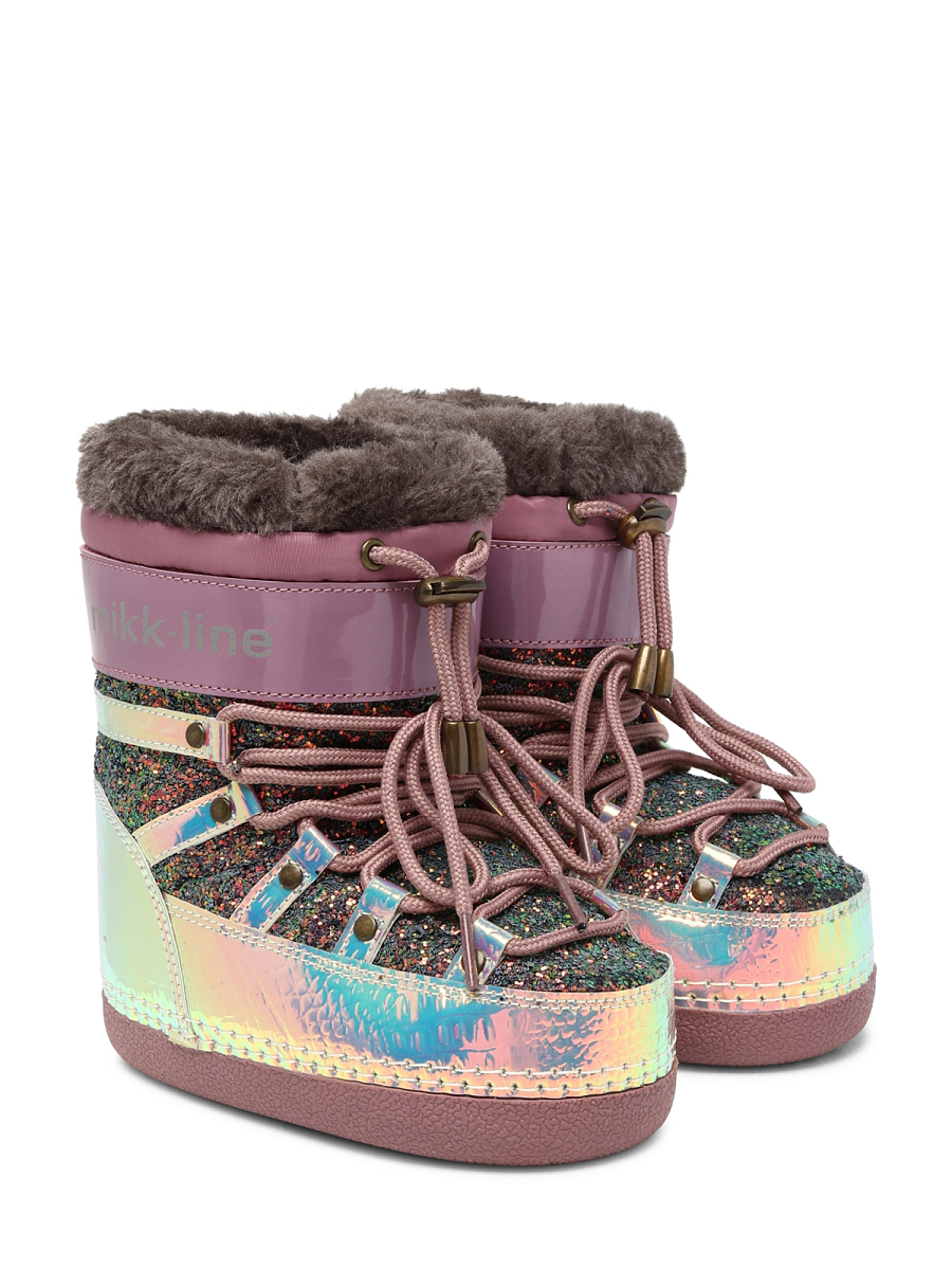 Mikk-Line Snow Boot Glitter Rose Brown er en varm og slitesterk vintersko som kombinerer funksjon og lekent design. Den glitrende finishen gir et moderne uttrykk, mens den vannavvisende overflaten og det myke fuskepelsforet sørger for at barnas føtter holder seg tørre og varme i vinterkulden. Den praktiske slip-on-konstruksjonen gjør skoen enkel å ta av og på, og den justerbare snoren øverst sørger for at snø og vann holdes ute. Skoen har en termoplastisk mellomsåle som gir god støtdemping og reduserer belastning under lek, mens den sklisikre yttersålen gir godt grep på glatte underlag.