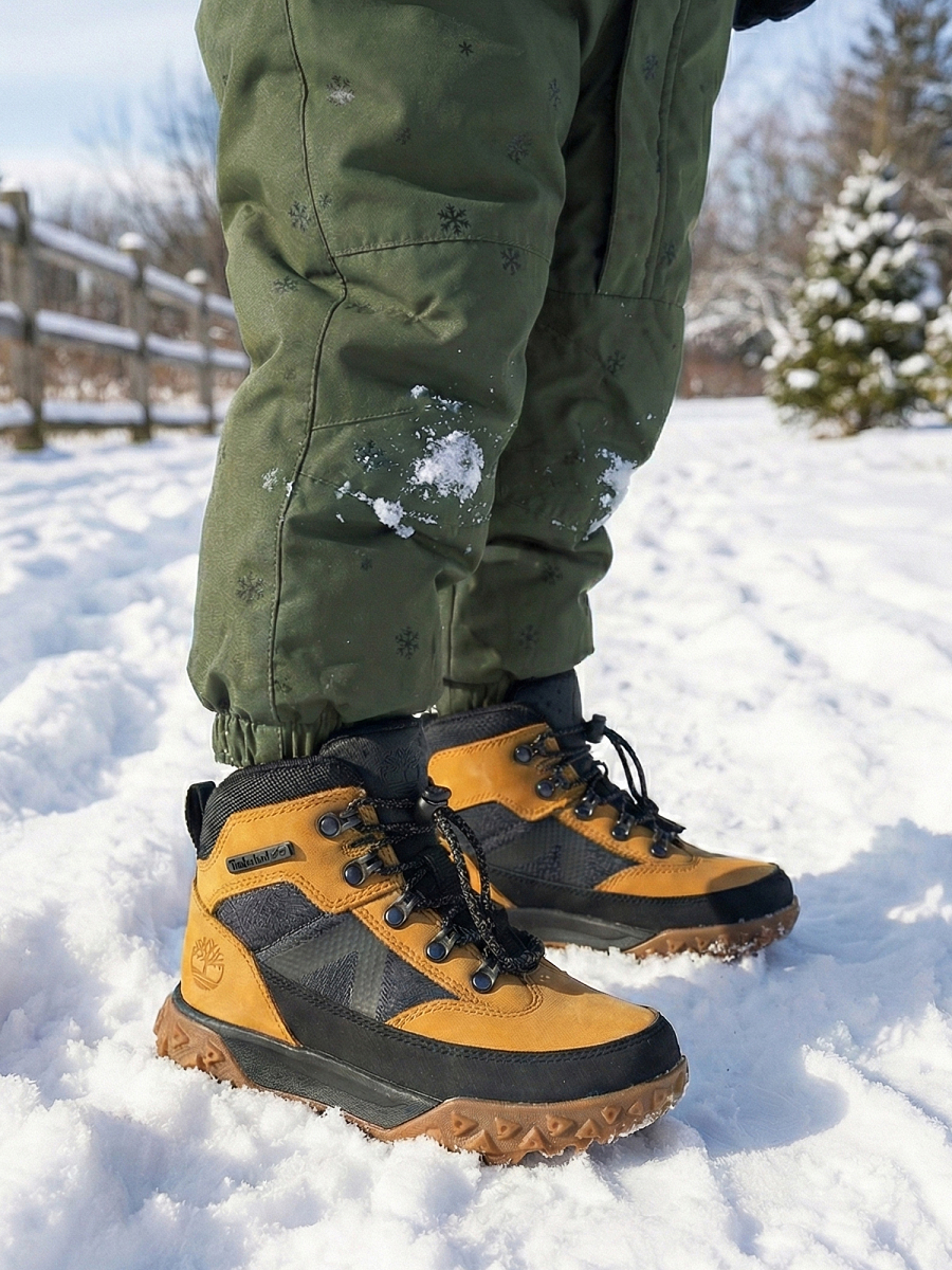 Disse robuste barneskoene fra Timberland er laget for aktive barn som trenger slitesterke og komfortable sko i all slags vær. Modellen er vanntett og beskytter små føtter mot fukt og kulde, samtidig som den puster godt takket være en membran som holder føttene tørre og behagelige hele dagen. Den myke Greenstride™-sålen er produsert av fornybare, naturlige materialer og gir utmerket demping ved lek og bevegelse. Overdelen i solid syntetisk materiale og tekstil gir både styrke og fleksibilitet, mens den elastiske bungee-lukkingen gjør skoene enkle å ta av og på – perfekt for barn som liker å klare seg selv.