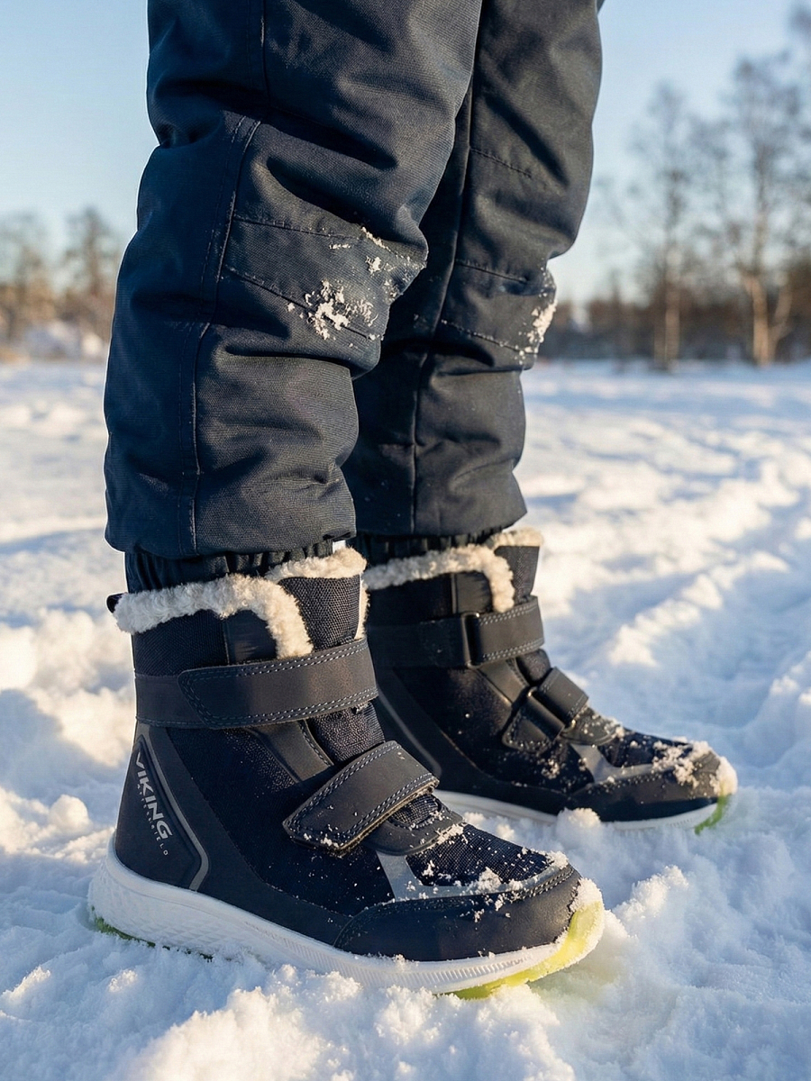 Vanntett, isolert, reflekterende barnesko som lyser i mørket