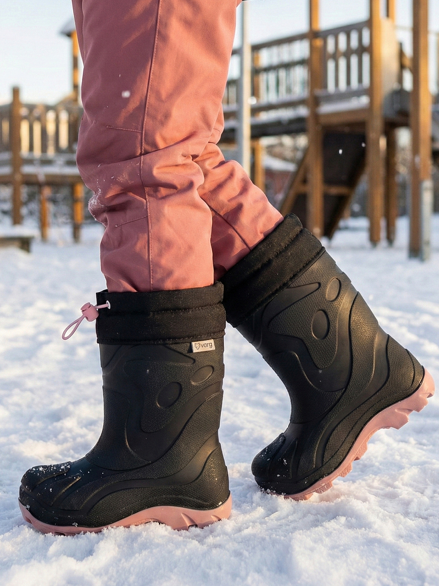 Varg Frost Wool Kids Boot Rose er en varm og funksjonell vinterstøvel designet spesielt for aktive jenter. Støvlene er laget i lett og slitesterkt materiale som tåler både kulde og fukt, slik at føttene holder seg tørre og komfortable hele dagen. Den myke ullmiks-fôringen gir behagelig varme og naturlig pusteevne, mens den solide yttersålen sørger for stabilt grep på snø og is. Øverst har støvlene en praktisk snølås med stramming som hindrer snø i å komme inn, og speed lacing-systemet gjør dem enkle å ta av og på selv. Perfekt for lek i snø og barnehagebruk gjennom hele vinteren.