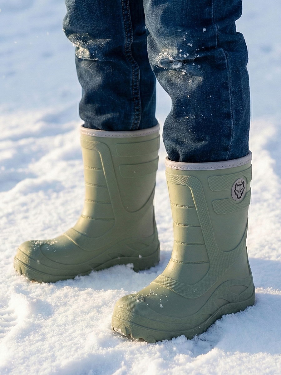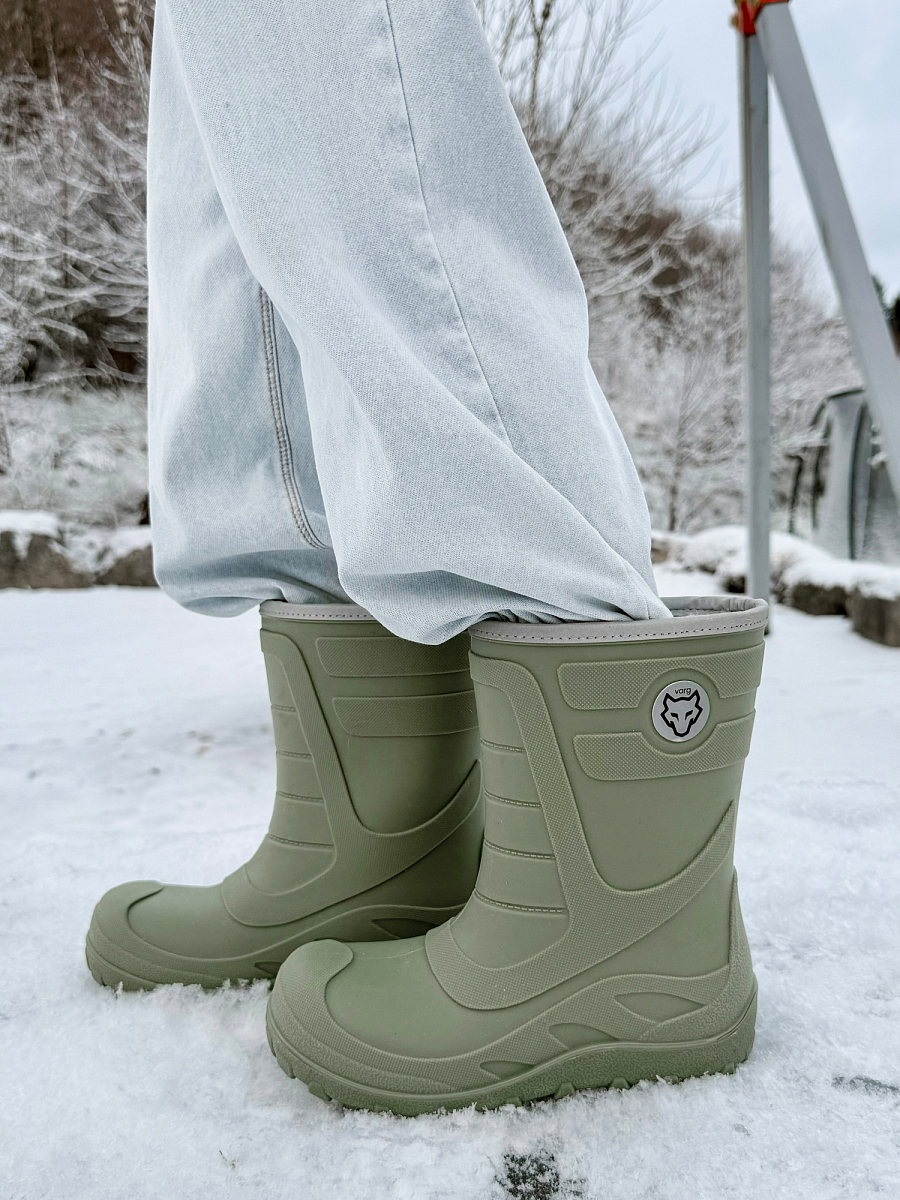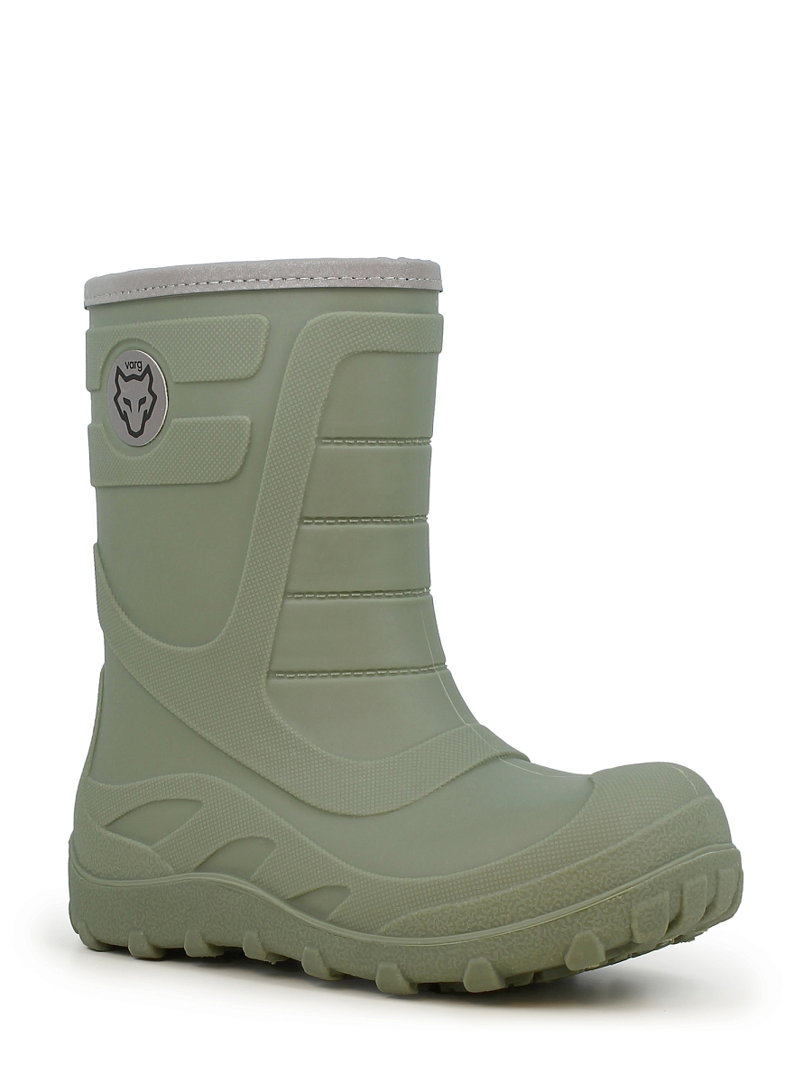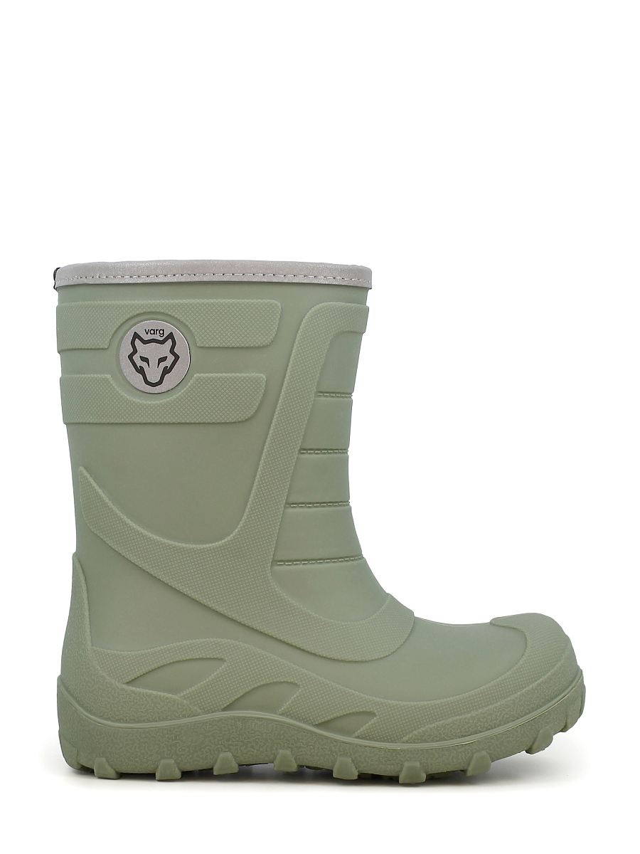 Varg Tind Wool Thermo Boot Kids Sage er en lett og varm termostøvel til barn, laget for å takle kalde og våte dager gjennom høst, vinter og tidlig vår. Støvelen er produsert i solid og fleksibelt TPR-materiale som tåler både fukt og kulde, samtidig som den isolerer godt mot underlaget. Innsiden er fôret med en myk ullmiks bestående av 30 % ull og 70 % polyester som gir naturlig varme og pusteevne. Den uttakbare innersålen i samme materiale gjør det enkelt å måle passform og tørke støvlene etter bruk. Refleksdetaljer langs øvre kant og på siden bidrar til økt synlighet i mørket, slik at barnet er godt synlig på tur til og fra skole eller barnehage. Den grove yttersålen gir stabilt grep på glatte underlag, mens den lave vekten sikrer god komfort for små føtter. En funksjonell og slitesterk støvel som holder barna varme og trygge på vinterens eventyr.