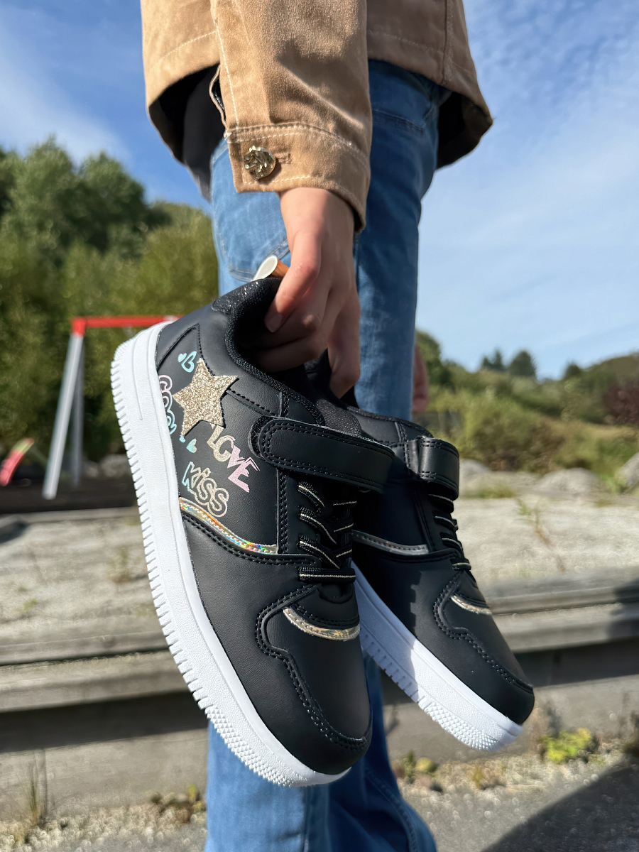 Duffy GlitterPop Black – Lekne sneakers med gullmotiv for barn