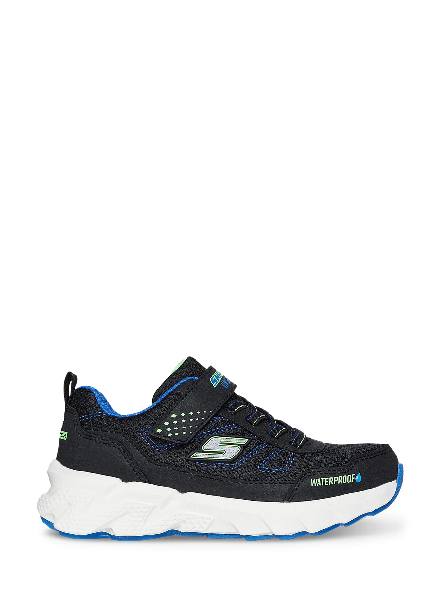 Skechers Elite Sport Tread - Aquavek er en praktisk og slitesterk barnesko som er utviklet for aktive dager i variert vær. Med vanntett konstruksjon og forseglede sømmer holder denne modellen føttene tørre, samtidig som den gir god komfort gjennom hele dagen. Overdelen i mesh og syntetisk materiale sørger for en lett og fleksibel følelse, mens designet gir nødvendig støtte til lek og aktivitet både ute og inne.