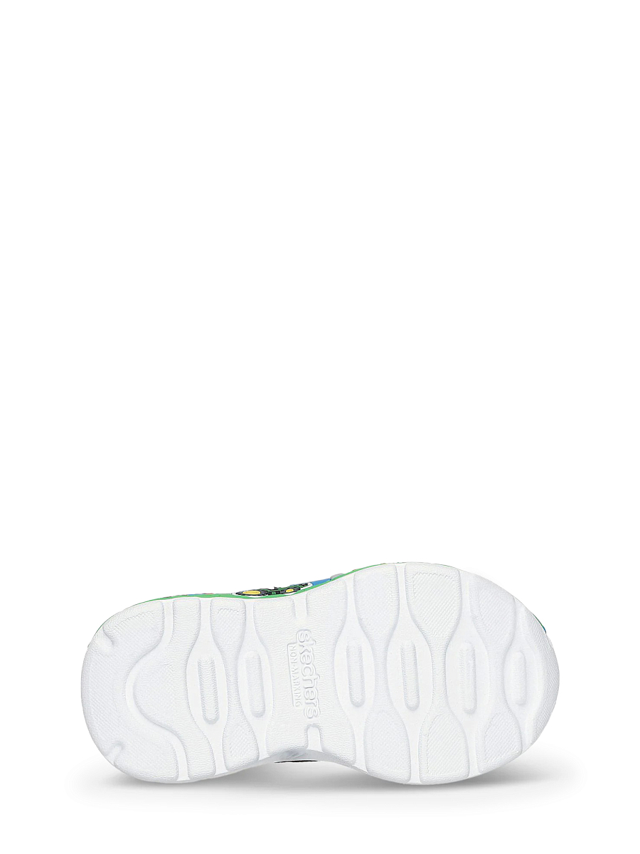 Overdelen er laget av en lett og pustende kombinasjon av mesh og syntetiske materialer som gir god ventilasjon og slitestyrke. Elastiske lisser sammen med justerbar borrelåsrem sørger for enkel tilpasning og stabil passform, mens Skechers Adaptive Closure gjør skoen praktisk for både barn og foreldre. Den polstrede innersålen gir god komfort gjennom hele dagen, enten det er lek ute eller aktiviteter i barnehage og skole. Skoen kan også vaskes i maskin, noe som gjør vedlikeholdet enkelt.
