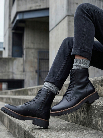 Savona Leather Lace Boots Black