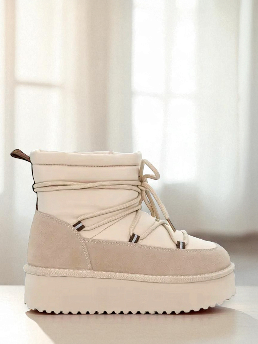 Duffy Cortina Winter Boot kombinerer moderne design med funksjonell komfort for vinterens kjølige dager. Den beige støvelen har en klassisk silhuett med snøring foran som gir fleksibel passform og et tidløst uttrykk. Det varme tekstilforet holder føttene behagelig varme, mens den kraftige yttersålen med solid mønster gir godt grep på glatte underlag. Overdelen er laget i slitesterkt syntetmateriale som tåler fukt og kulde, slik at skoene passer perfekt til nordiske vinterforhold.