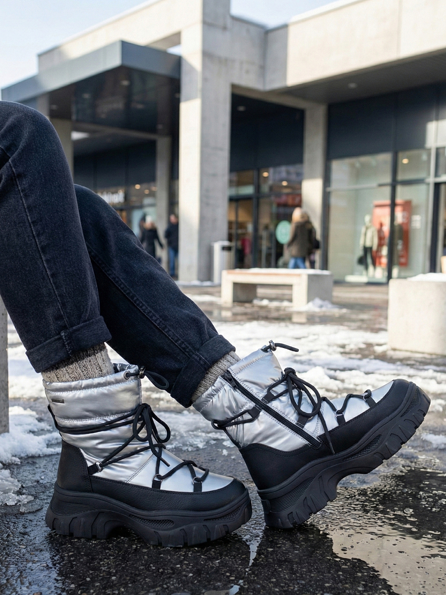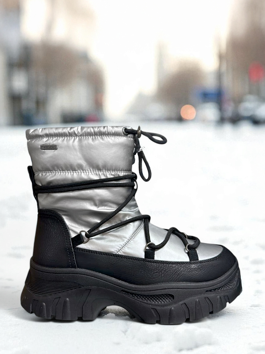 Hold føttene varme og stilige med disse kule vinterbootsene til dame! De har et sporty utseende med et blankt materiale og dekorative lisser på overdelen. Den praktiske glidelåsen på innsiden gjør det enkelt å ta skoene av og på. Med *vanntett design og superdeilig varmfôr er disse skoene perfekte for kalde og våte vinterdager.