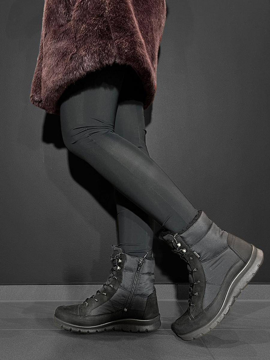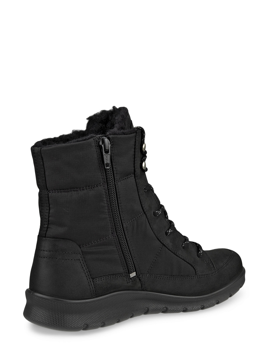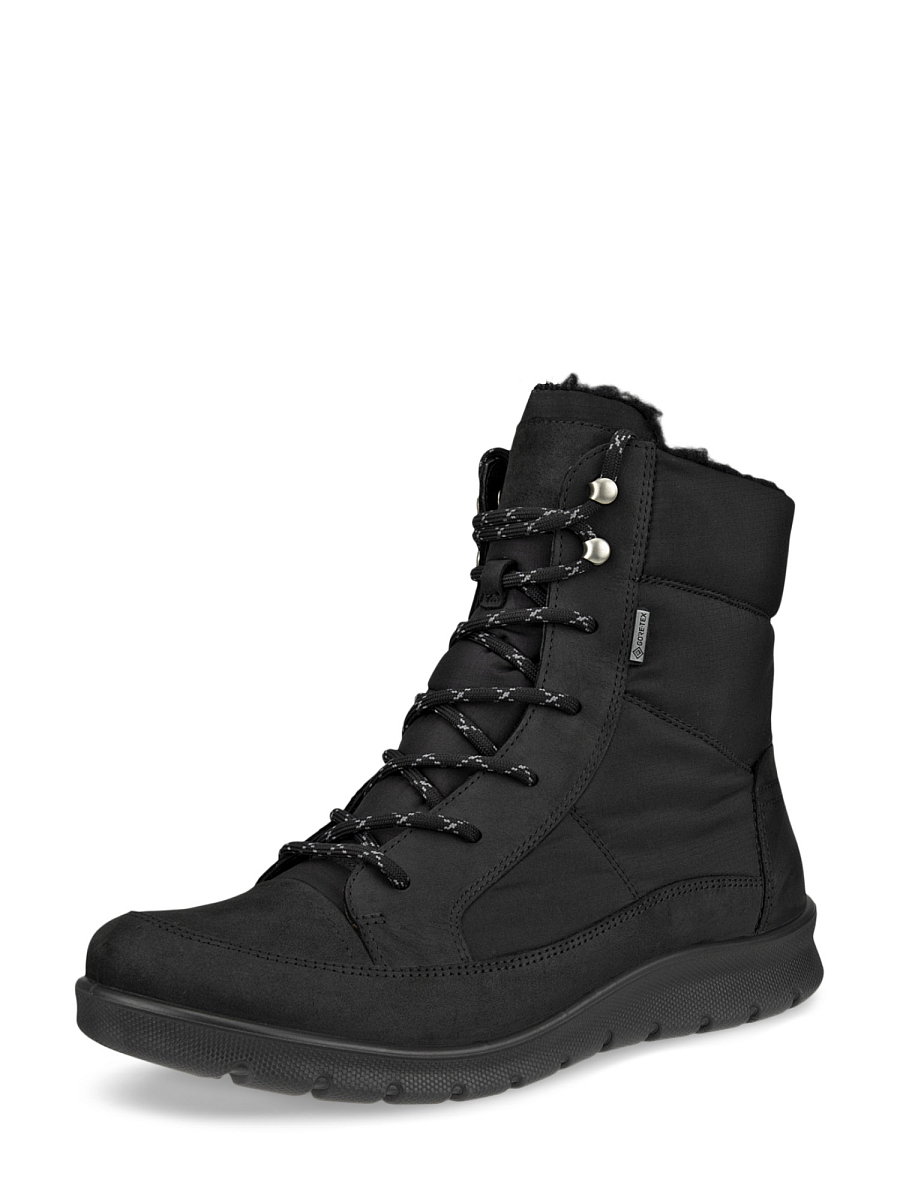 ECCO Babett Boot BlackBlack Oil Nubuck er en komfortabel og funksjonell vintersko utviklet for å gi maksimal beskyttelse i kalde og våte forhold. Overdelen er laget i oljet nubuckskinn kombinert med slitesterke tekstildetaljer som gir både pusteevne og holdbarhet. Med GORE-TEX-membran er støvelen 100 % vanntett og samtidig pustende, slik at føttene holder seg tørre og komfortable uansett vær.