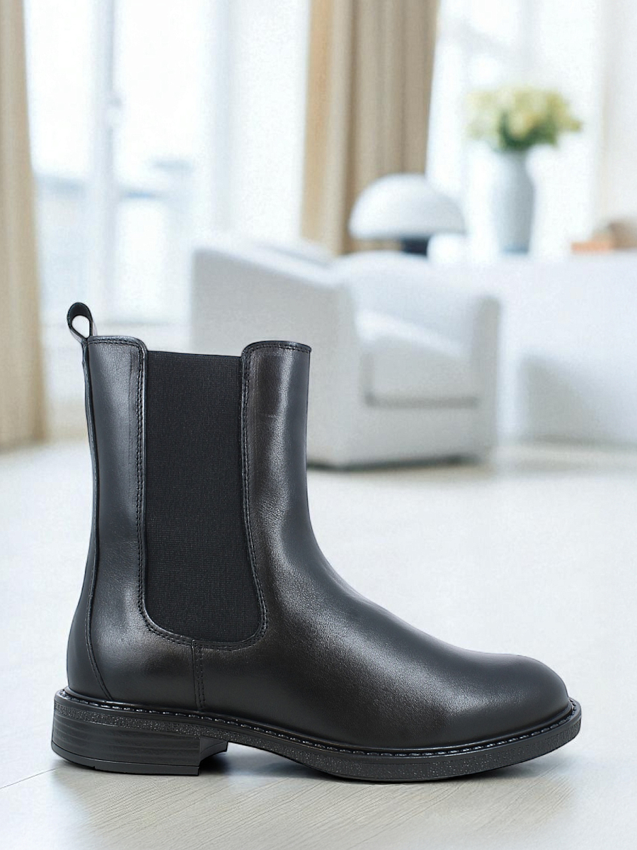 Klassisk og tidløs sort Chelsea-boots i skinn