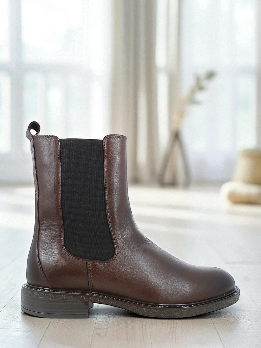 Den tidløse brune fargen gjør denne Chelsea-bootsen enkel å kombinere med ulike antrekk, fra jeans og skjorte til kjoler og strømpebukser. Den passer perfekt til både høst- og vintergarderoben, men fungerer like godt på vår- og kjølige sommerdager.