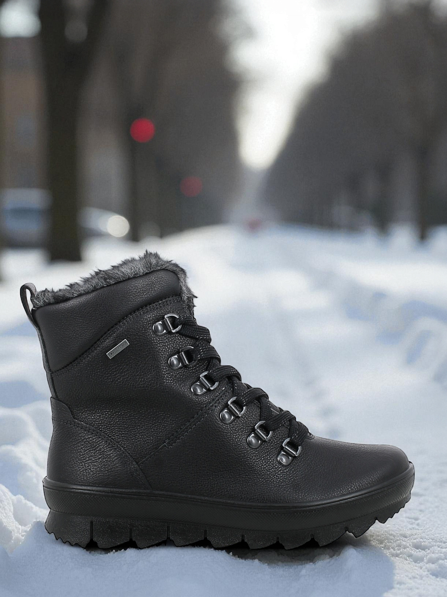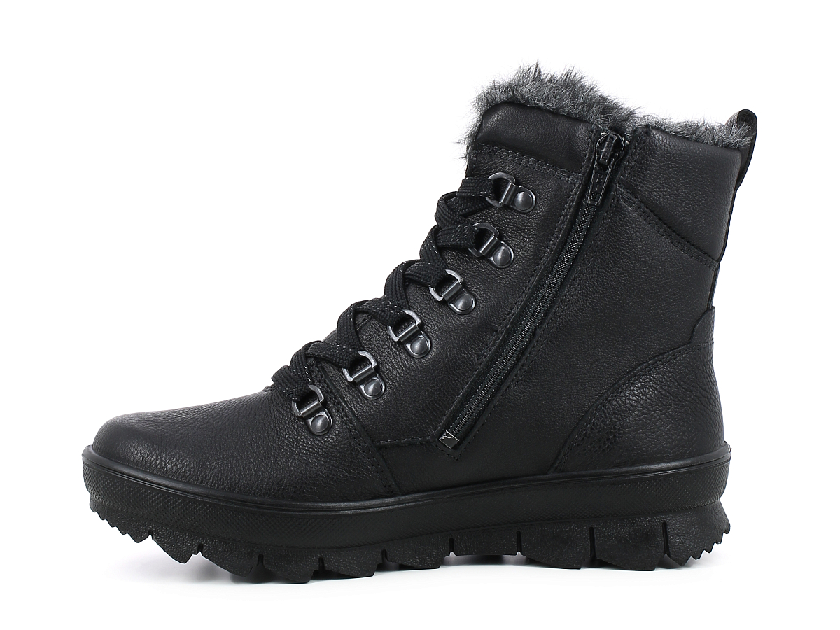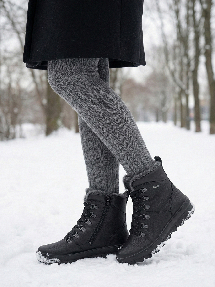 Inspirert av sporty trekking-utseende, er den mellomhøye NOVARA-støvelen den perfekte skoen til kalde vinterdager. Rustikke detaljer og de fineste materialene kombineres for å skape den uforlignelige legero-looken. Ankelstøvelen er laget av spesielt mykt og smidig skinn og har patentert GORE-TEX-fôr. Dette garanterer et perfekt klima for foten samt varme og tørre føtter hele dagen - uansett vær. Med sin snøring og glidelås kan NOVARA tilpasses individuelt til foten, noe som sikrer god passform og støtte i skoen. Den sklisikre sålen med sin sagtannprofil er laget av ekstra lett, direkte injisert PU. Takket være komfortbredden "G" sørger den flotte vinterstøvelen for en lys stemning selv på grå vinterdager.