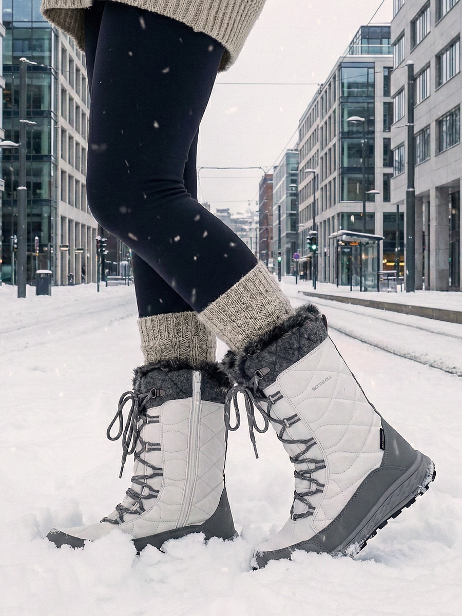 Yttersålen har et solid, dypt mønster som gir godt grep på glatte overflater, slik at du kan føle deg trygg når du er ute i vinterlandskapet. Skoens nøytrale farger i hvit og grå gjør den enkel å kombinere med ulike vinterantrekk, samtidig som den gir et friskt og rent utseende.