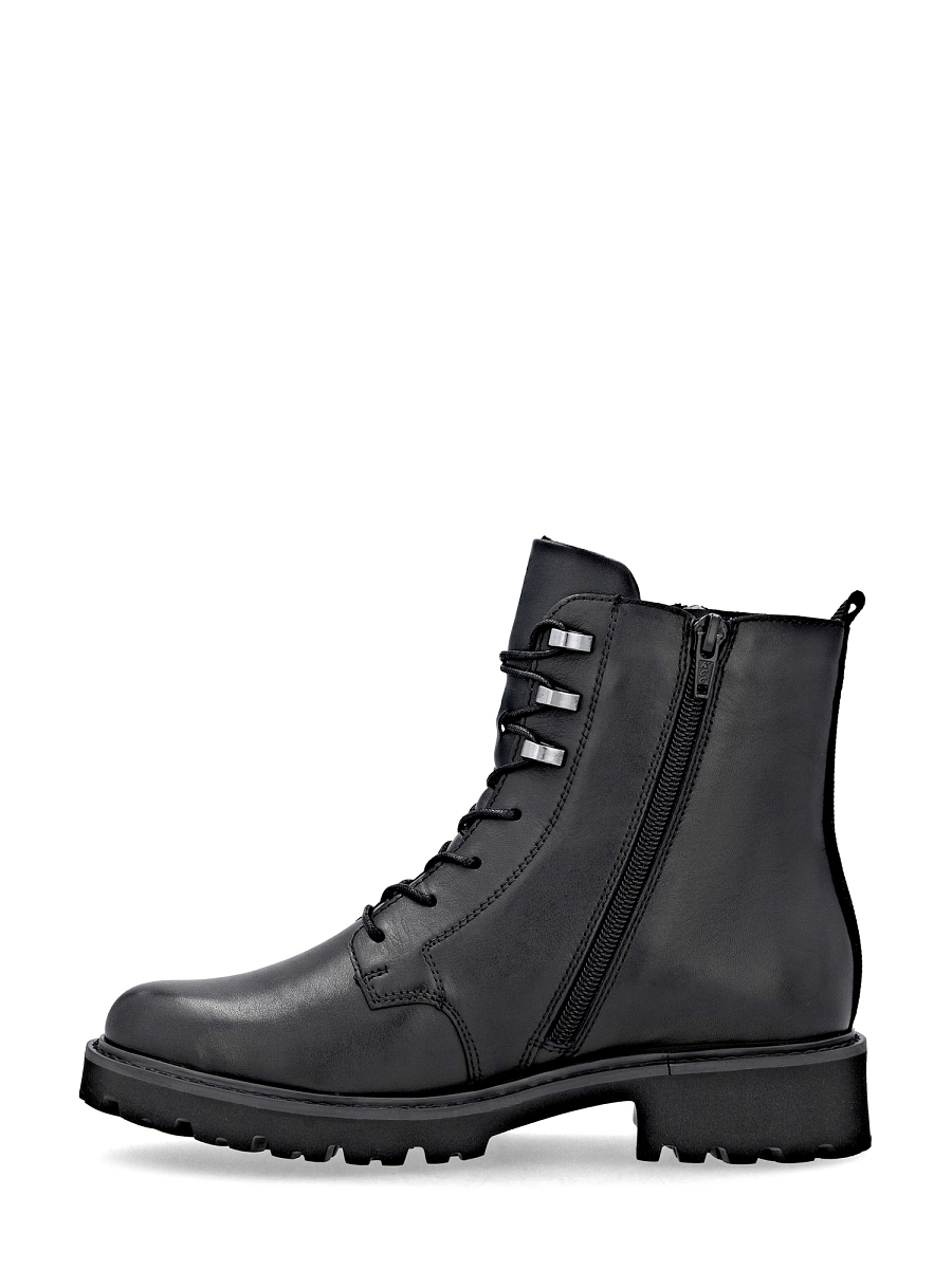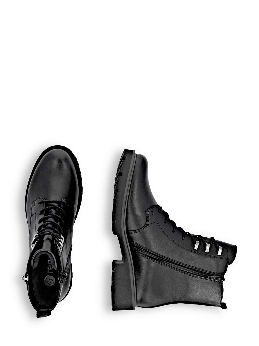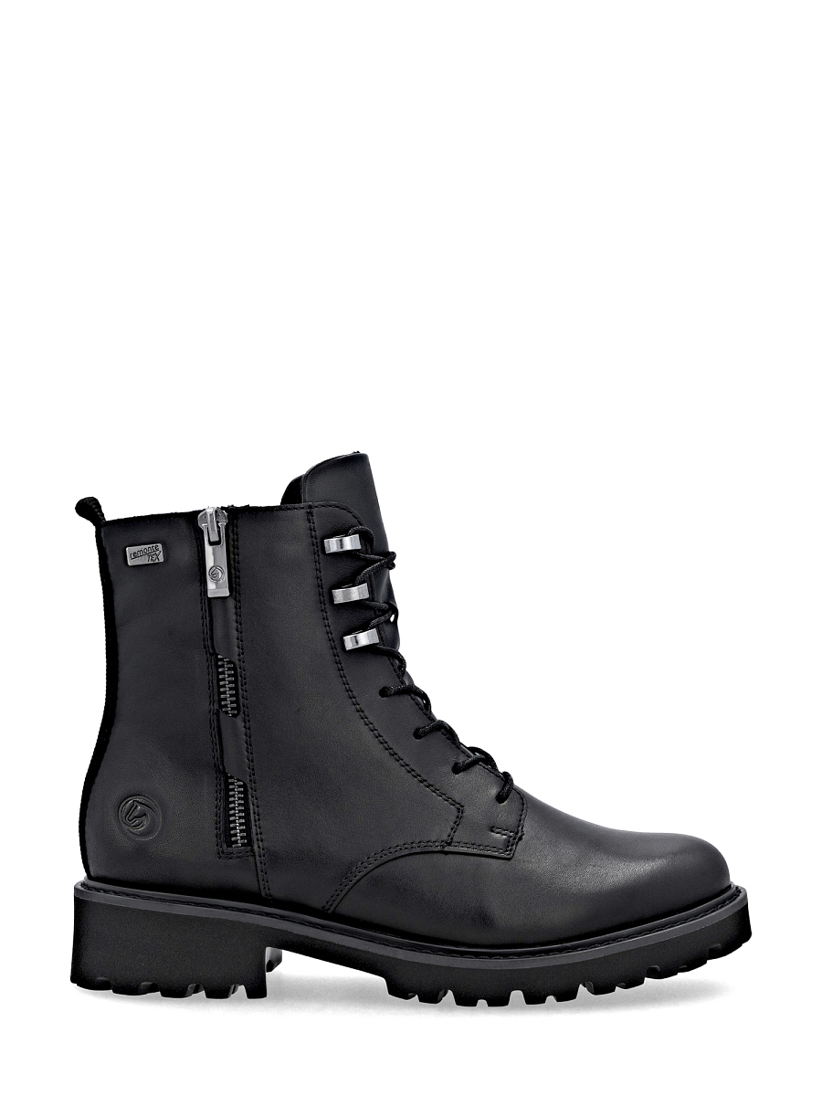 Remonte Lendara Boot er en elegant og funksjonell snørestøvlett til dame i svart glatt skinn, perfekt for kjølige og våte dager. Overdelen i ekte skinn gir naturlig pusteevne og holdbarhet, mens den vannavvisende remonteTEX-membranen beskytter mot fukt og sørger for et behagelig klima inni skoen. Den praktiske kombinasjonen av snøring og glidelås gjør det enkelt å ta skoen av og på, samtidig som du får optimal passform. Den myke fløyelsforede innsiden gir lun komfort, mens den uttakbare tekstilinnersålen med Lite’n Soft-teknologi gir ekstra støtdemping og lett følelse ved hvert steg. Den stabile blokkhælen på 39 mm og IM-EVA-sålen sørger for god balanse, fleksibilitet og demping gjennom dagen. Med komfortbredde (G–G½) får føttene mer plass og bedre bevegelsesfrihet – ideelt for deg som ønsker både stil og komfort i ett.