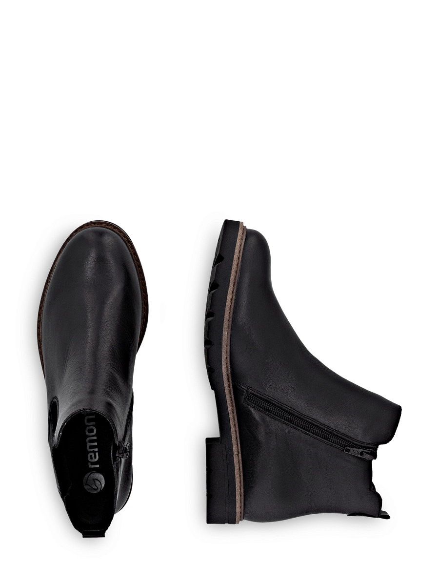 Remonte Torino Ankle Boot Black kombinerer klassisk design med komfort og funksjonalitet. Kjøp nå og få en støvlett i ekte skinn som holder stilen sesong etter sesong. Sjekk tilgjengelighet for klikk og hent i en av våre butikker.