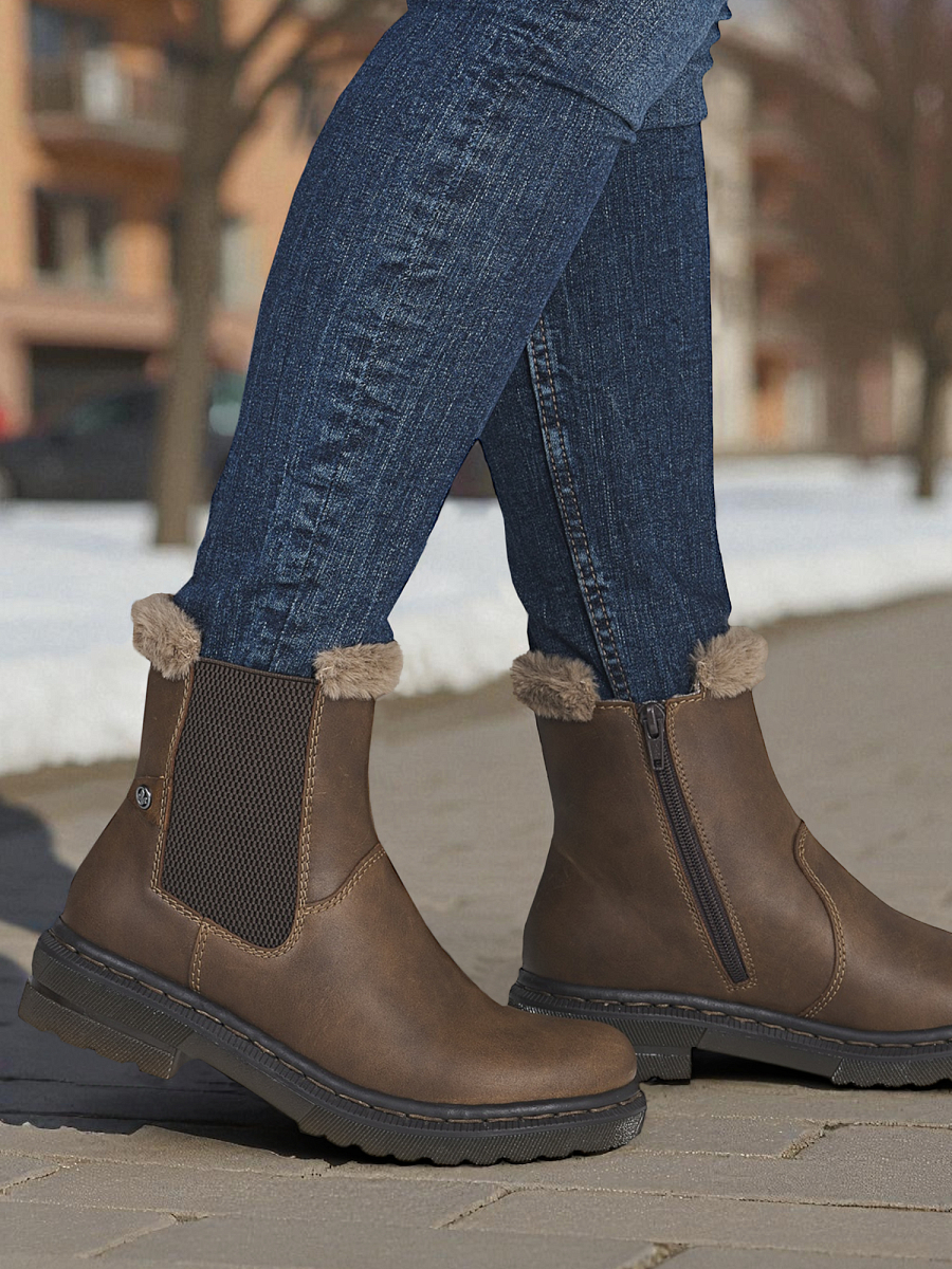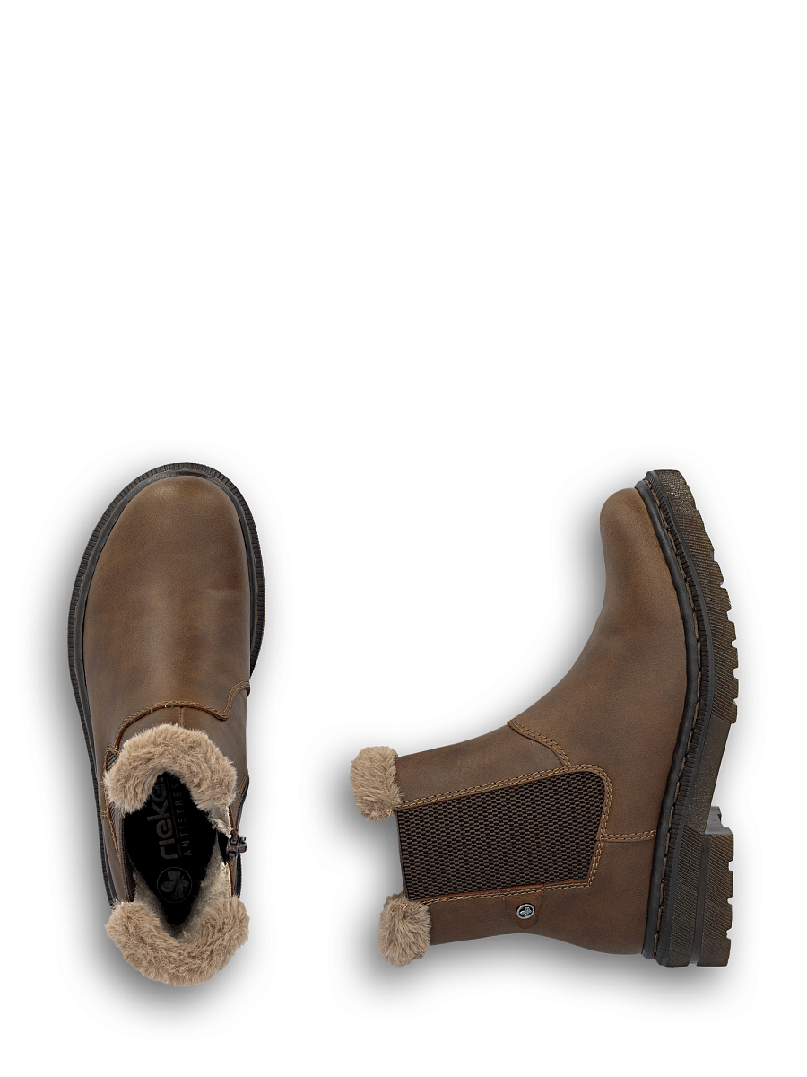 Rieker Laira Winter Boot kombinerer klassisk design med god komfort. Denne vinterstøvelen er laget med Riekers robuste stitchdown-konstruksjon som gir fleksibilitet og en behagelig passform. Overdelen har både glidelås og elastisk innfelt parti som gjør den enkel å ta av og på. Den myke pelskanten rundt skaftet gir et moderne uttrykk, mens det varme fôret holder føttene lune på kalde dager. Den polstrede dekksålen gir ekstra komfort, og den solide yttersålen i termoplastisk elastomer sørger for godt grep på glatte underlag.