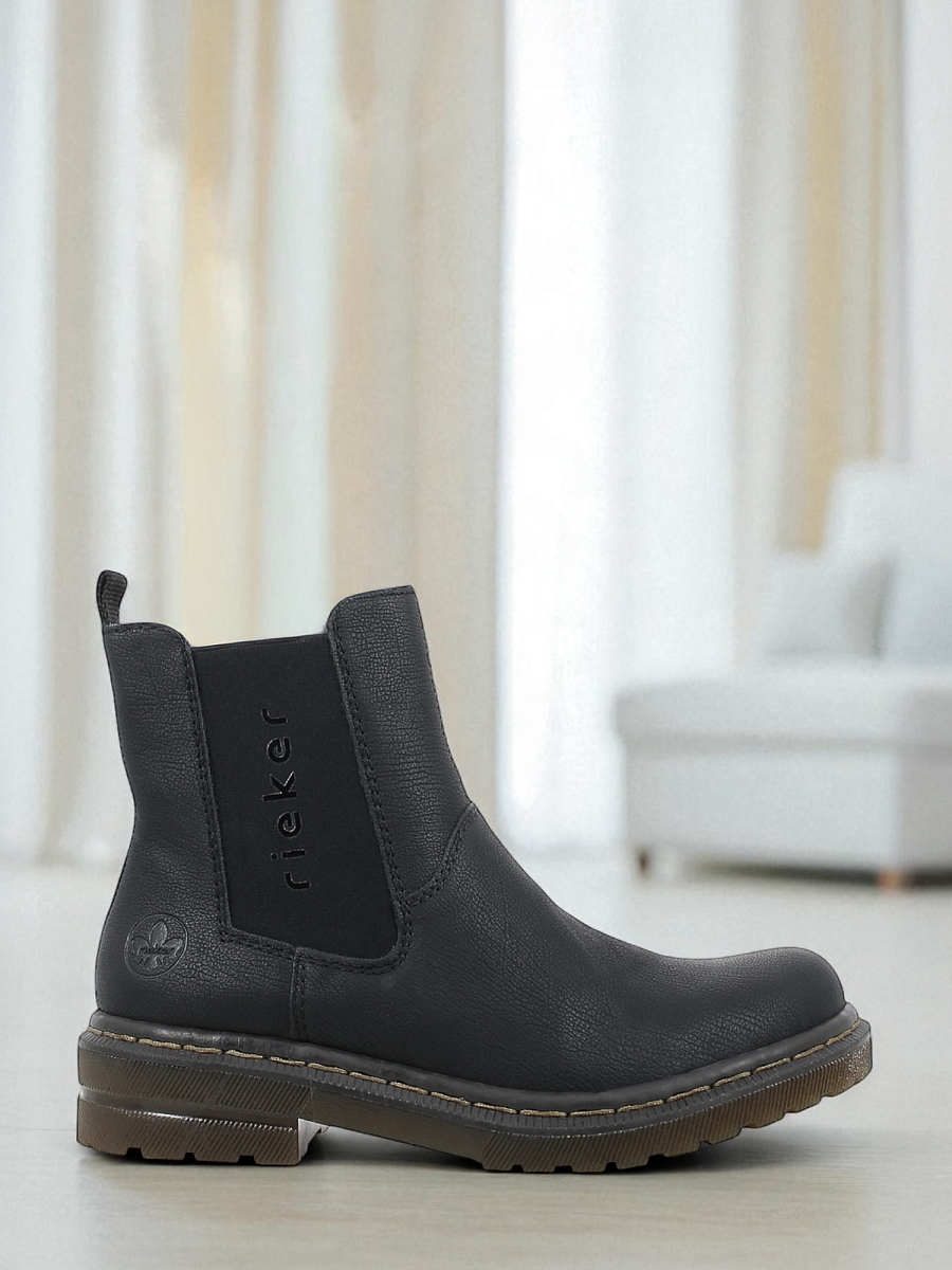 Gjør deg klar for de kalde dagene og få disse allsidige og svært komfortable RIEKER ankelstøvletter. Den glatte overdelen er dekorert med fine sømmer og en diskret merkelogo. Takket være gummien sydd på utsiden, tilpasser skoen seg perfekt til foten, og glidelåsen gjør det enkelt å ta av og på. Den myke innersålen og det varme fôret sikrer maksimal komfort ved hvert trinn. Du kan enkelt kombinere disse støvlene med alle antrekkene dine.