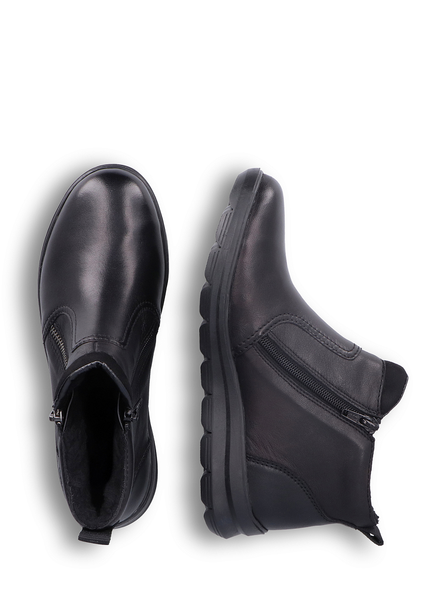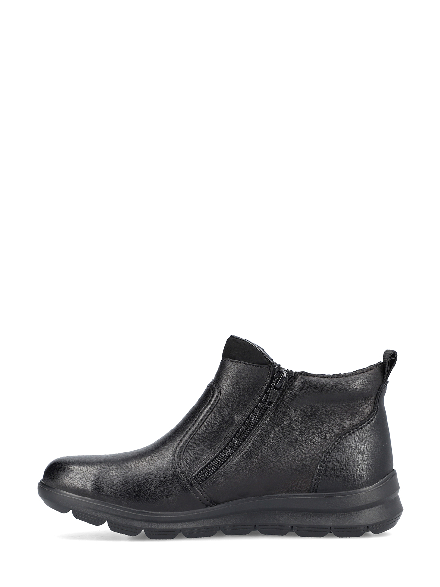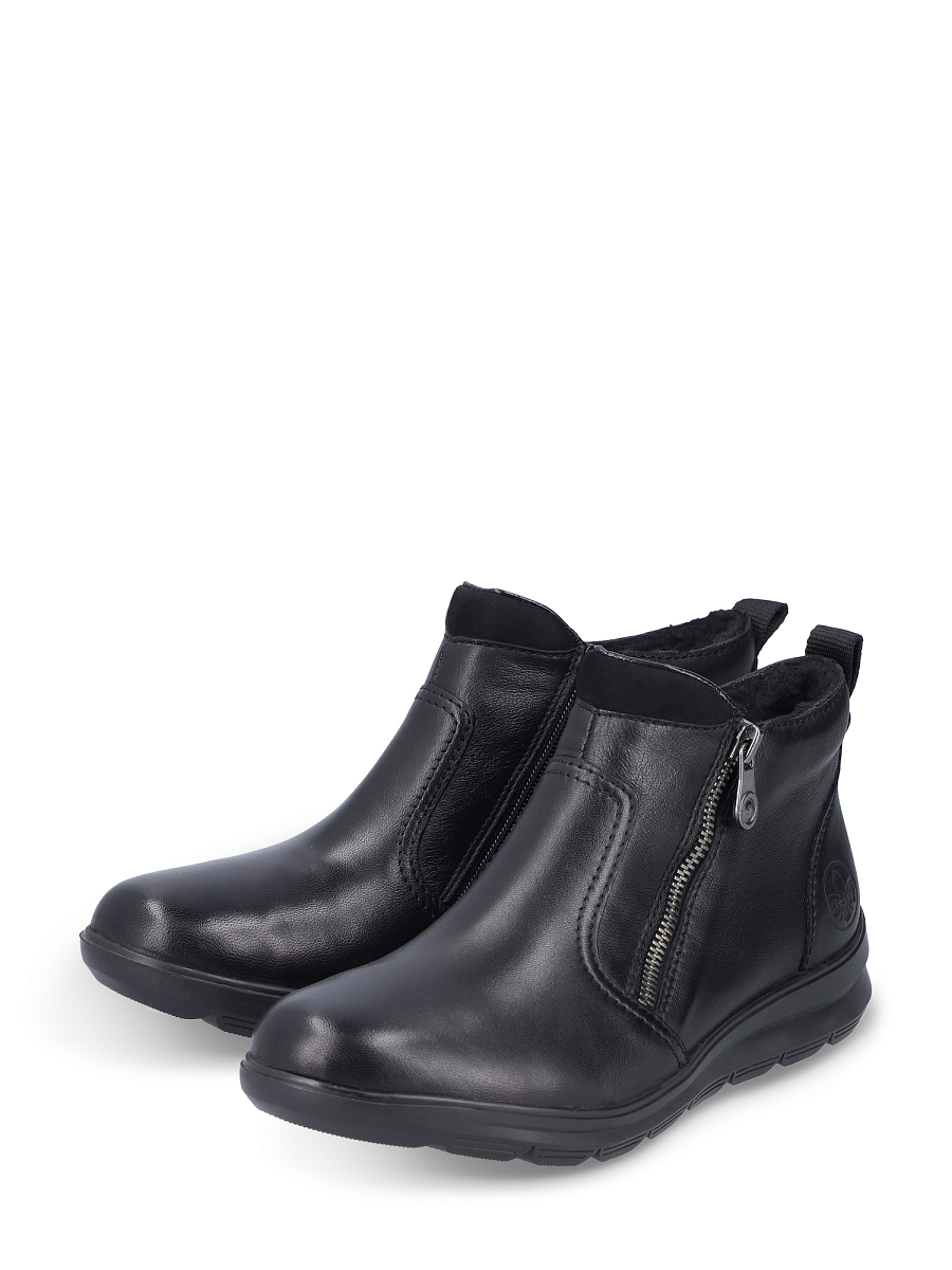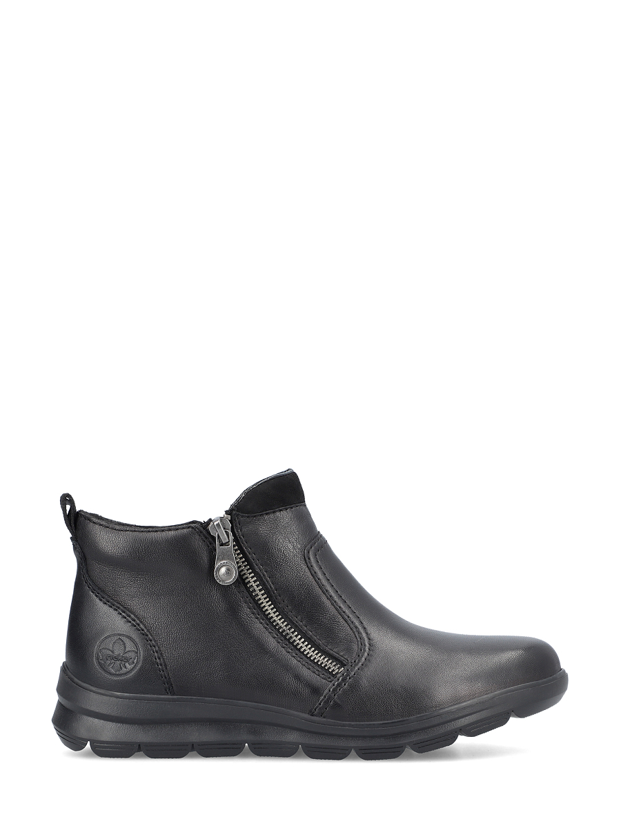 Rieker Maleni er en tidløs og komfortabel ankelboot laget i mykt skinn som tilpasser seg foten for god passform. Den har varmt tekstilfôr som holder føttene lune på kalde dager, og en uttakbar innersåle med RiekerSoft-teknologi som gir ekstra myk demping. Antistress-sålen sørger for at skoen er lett, fleksibel og støtabsorberende, noe som reduserer belastningen ved hvert steg. De doble glidelåsene på sidene gjør den enkel å ta av og på, mens den kraftige yttersålen gir godt grep på ulike underlag.