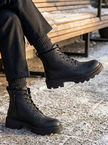Elegante Rieker skinnboot med svart overdel som er dekorert med en imponerende ankelstropp og merkets ikoniske logo. En funksjonell glidelås på innsiden av skoen sørger for enkel påføring, og sålen med støtdempende teknologi mens du går er også et komfortelement.