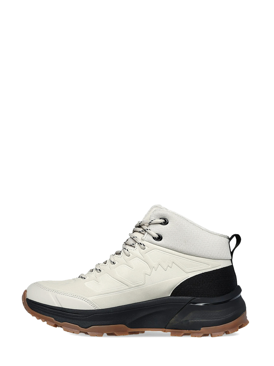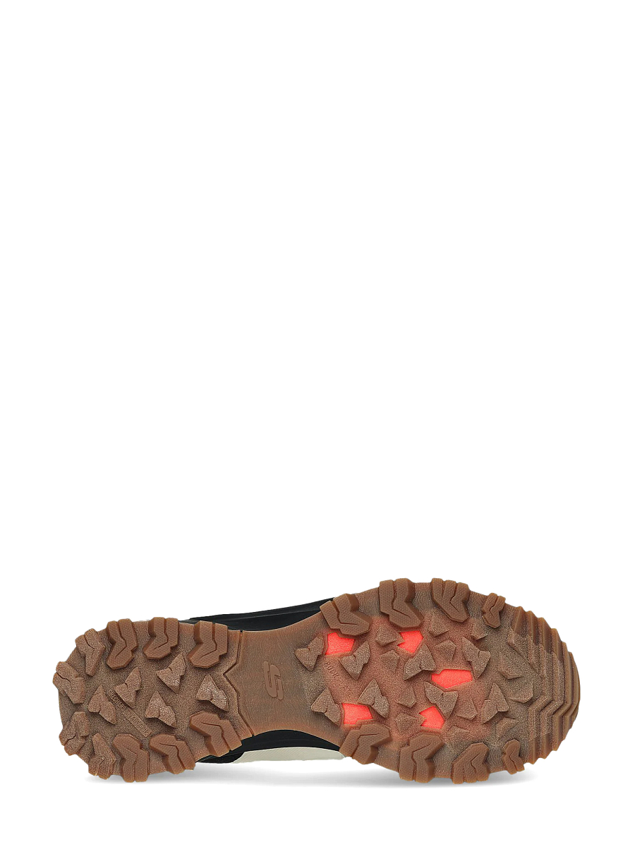 Overdelen er laget i slitesterkt syntetisk materiale med lisser som gir en sikker og justerbar passform. Innvendig er skoen utstyrt med Skechers Air-Cooled Memory Foam innersåle som former seg etter foten og gir myk demping gjennom hele dagen. Mellomsålen har integrert Rock Plate som bidrar til ekstra beskyttelse mot steiner og hardt underlag, noe som gir økt trygghet når du går på variert terreng. Yttersålen er konstruert for høy trekkraft og godt grep, slik at du står stødig uansett underlag.