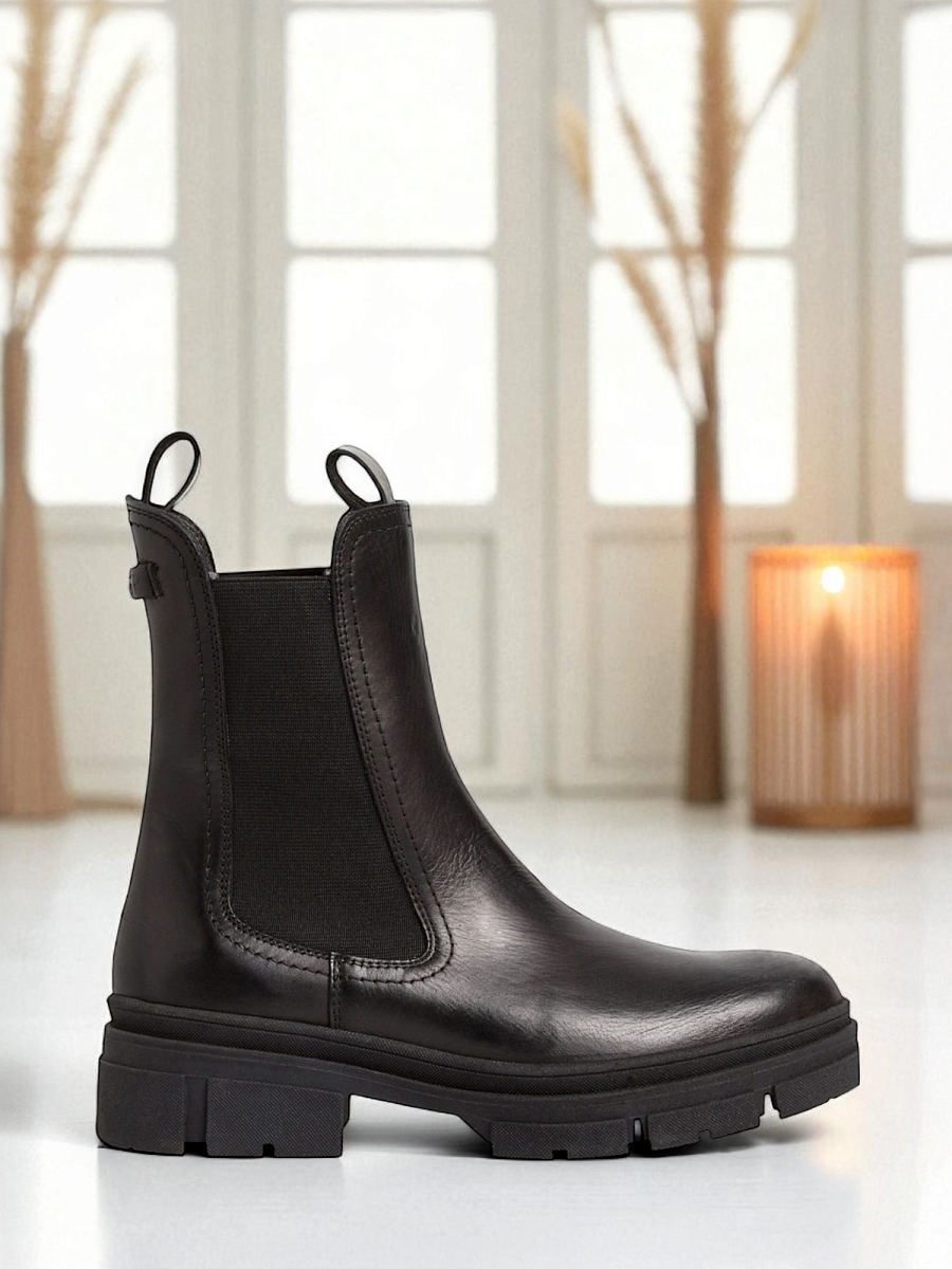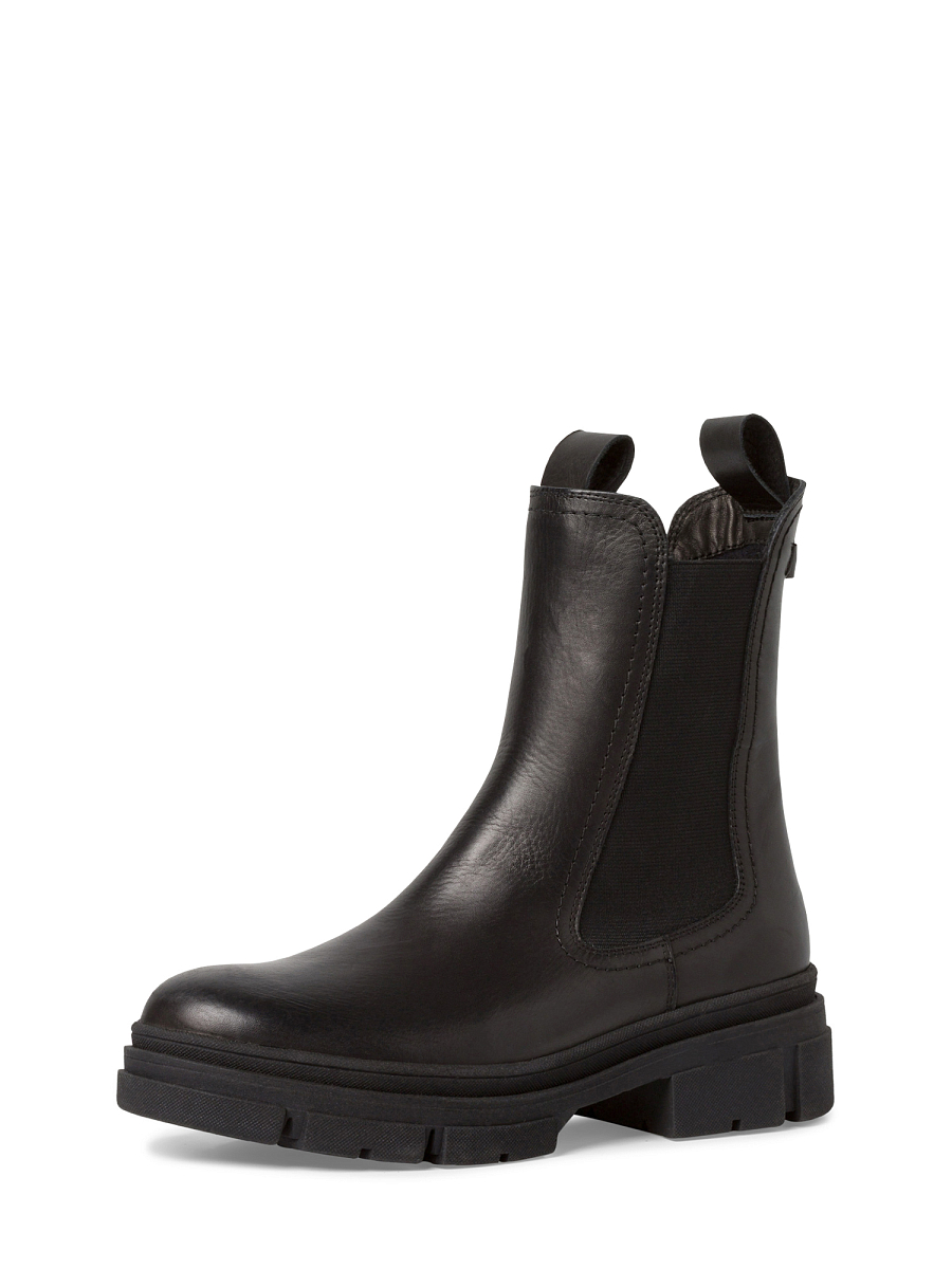 Disse Tamaris Chelsea-støvlene er den perfekte kombinasjonen av stil og komfort. Med en 5 cm høy blokkhæl gir de en behagelig høyde for hele dagen. Overdelen laget av høykvalitetsskinn gir dem et edelt utseende og sikrer holdbarhet. Med COMFORT fôrteknologi er de mykt polstret og gir en behagelig passform. TOUCH-IT-teknologien tilpasser seg foten din og gir optimal komfort. Enten for en casual look eller et elegant utseende, er disse Chelsea-støvlene det perfekte valget. Legg til et snev av stil til antrekket ditt med Tamaris.