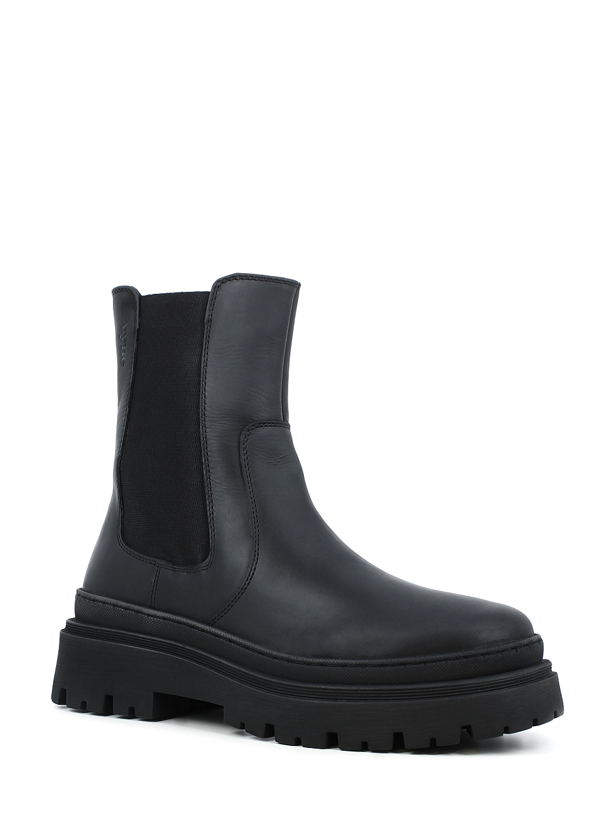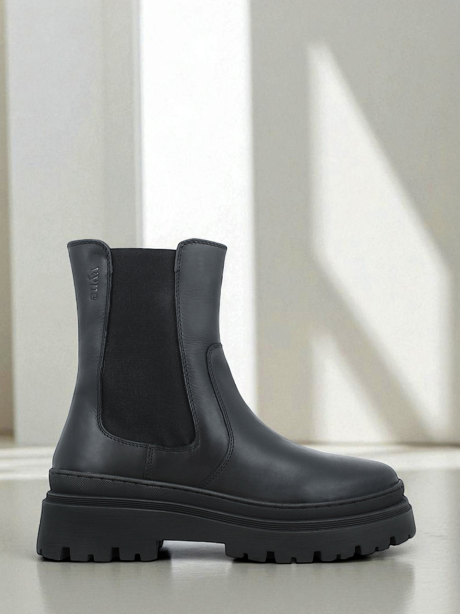 Denne eksklusive modellen fra Vyne er en moderne og solid chelseaboot i sort skinn, designet for både stil og komfort. Overdelen er laget av slitesterkt, glatt kvalitetsskinn fra storfe som gir et tidløst uttrykk og en premium følelse. De elastiske panelene på sidene gjør den enkel å ta på, mens glidelåsen på innsiden sørger for optimal passform og praktisk bruk. Bootsen har et mykt tekstilfôr som gir behagelig komfort gjennom hele dagen, og den kraftige yttersålen i gummi gir godt grep og stabilitet på ulike underlag. Platåsålen tilfører et moderne uttrykk og gjør skoen perfekt til både hverdagsbruk og mer pyntede antrekk.