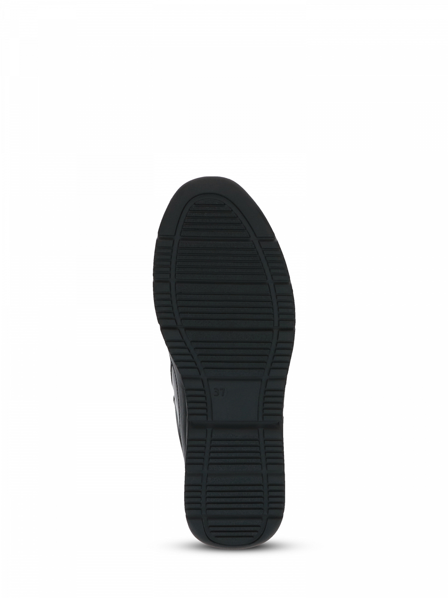 Overdelen av skoen er laget av skinn. Fargen på toppen er svart.