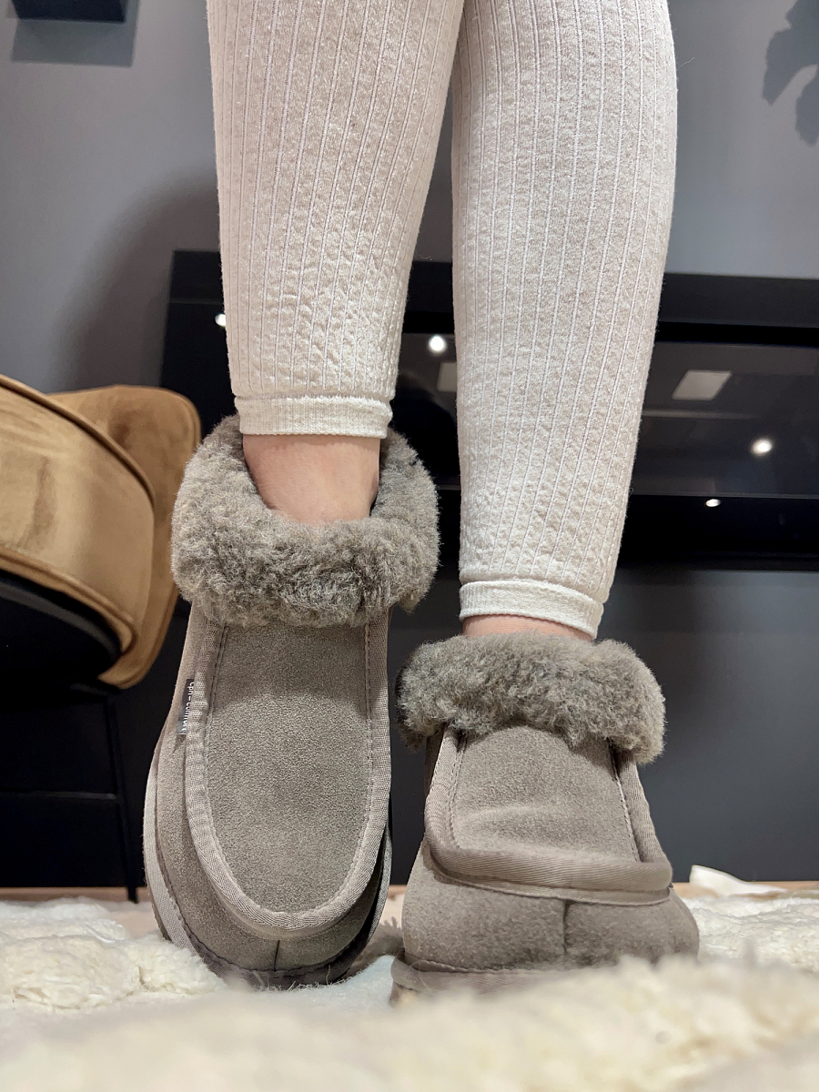 Varm og myk kamikk i nubuck skinn. Kamikken har en myk pelskrage i ullblanding. Den har en kraftig søm rundt forbladet. Lekkert varmt fôr og en sklihemmende PU-såle.