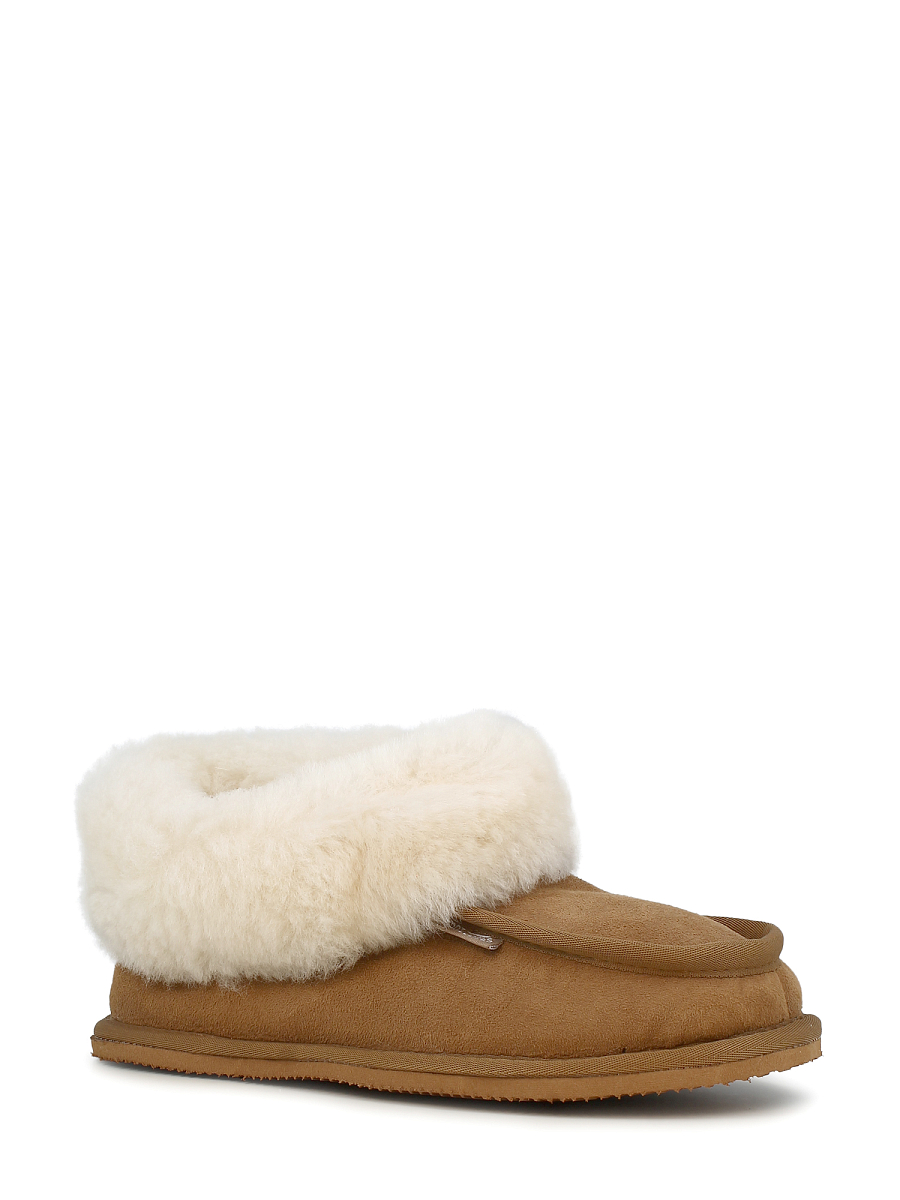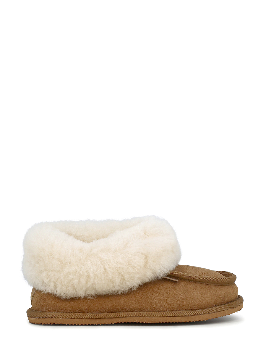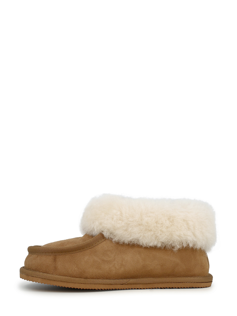Overdelen i førsteklasses semsket skinn gir et luksuriøst og slitesterkt preg, mens det myke, naturlige ullfôret holder føttene varme og tørre. Den lette og fleksible gummisålen sørger for godt grep og gjør tøffelen egnet også for korte turer utendørs.