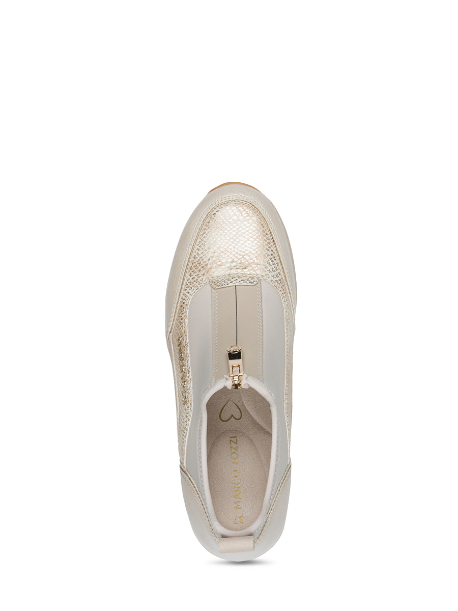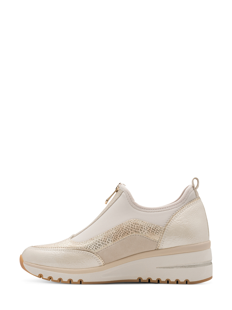 Nivela Wedge Sneaker fra Marco Tozzi er en sporty og feminin damesneaker som kombinerer moderne design med høy komfort. Overdelen er laget i en lett og fleksibel kombinasjon av tekstil og syntetiske materialer som gir et elegant uttrykk og god bevegelighet i hverdagen. Den runde tåformen gjør modellen anvendelig og enkel å style til både bukser, skjørt og kjoler, mens den diskrete glidelåsen på siden gir enkel av- og påtaking uten å gå på bekostning av det feminine preget.