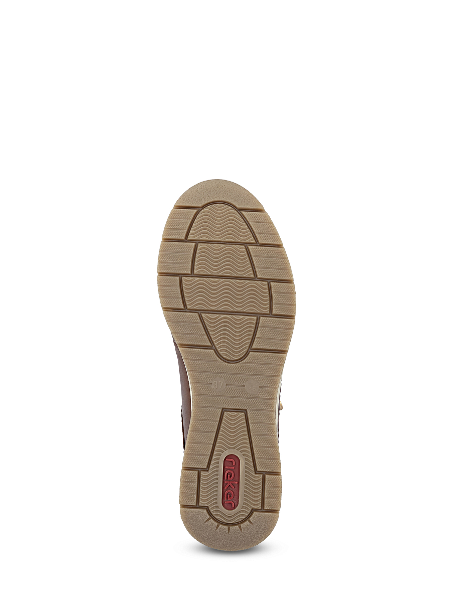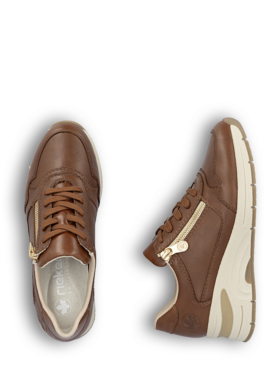Rieker Firenze Sneaker Leather Brown er en moderne og komfortabel sko som passer perfekt til hverdagsbruk. Den kombinerer sporty design med elegante detaljer, og gir et avslappet, men stilsikkert uttrykk. Overdelen i skinn gir en behagelig passform, mens den fleksible sålen sikrer god komfort gjennom hele dagen. Glidelåsen på siden gjør det enkelt å ta skoene av og på, og den uttagbare innersålen gir mulighet for ekstra tilpasning.