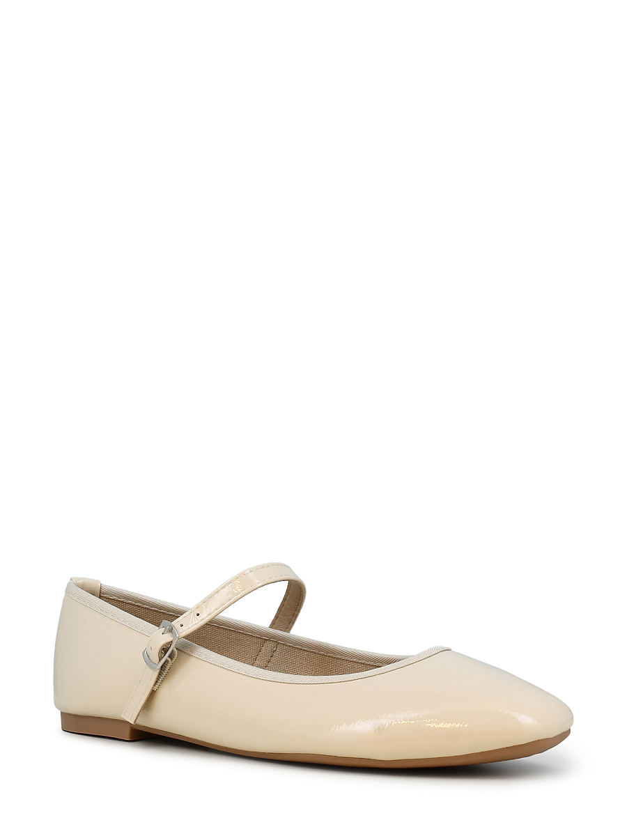 Materialer og egenskaper: Overdel i lakkert kunstskinn gir et stilrent og lettstelt uttrykk Innvendig fôr i mykt tekstil for økt komfort Lett og fleksibel konstruksjon for naturlig bevegelse Justerbar reim over vristen for optimal passform Slitesterk yttersåle med godt grep
