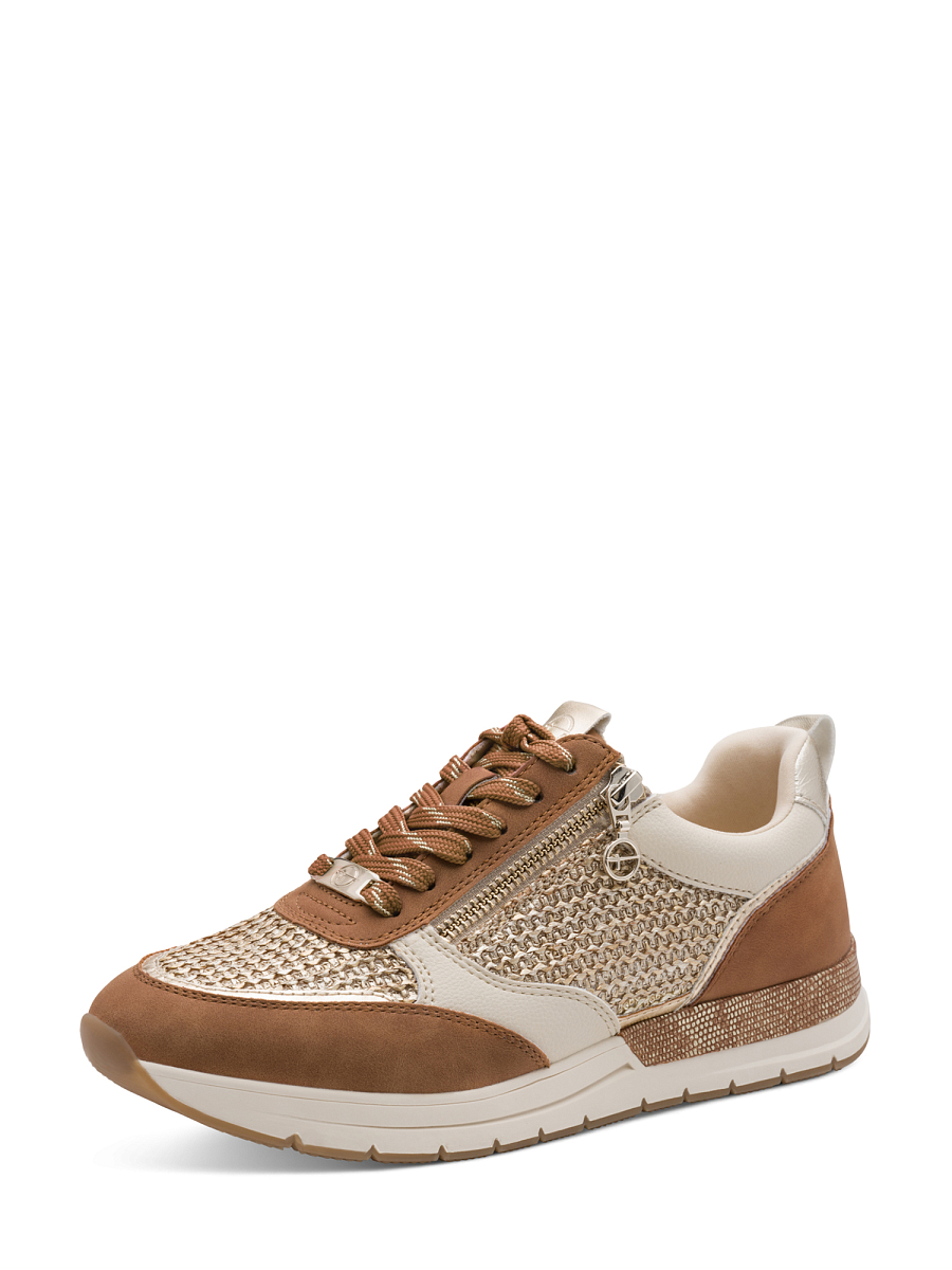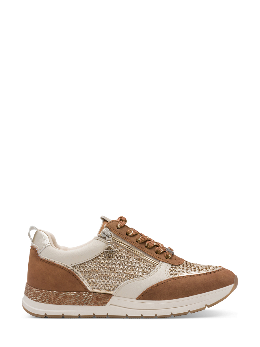 Denne moderne sneakersen fra Tamaris kombinerer et elegant uttrykk med høy komfort, perfekt for deg som ønsker en stilren hverdagssko med det lille ekstra. Overdelen har en spennende materialmiks av tekstil og syntetiske materialer, hvor strukturert tekstil gir et eksklusivt preg, mens kontrastdetaljer i beige og brun skaper et sofistikert og lett anvendelig design. Den dekorative glidelåsen på siden gir både et moderne uttrykk og gjør skoen enkel å ta av og på i en travel hverdag.