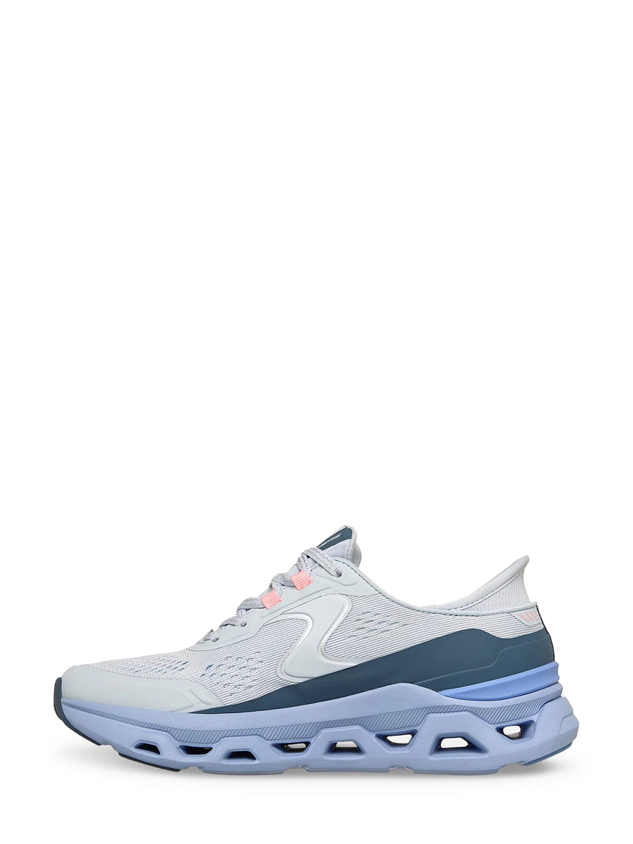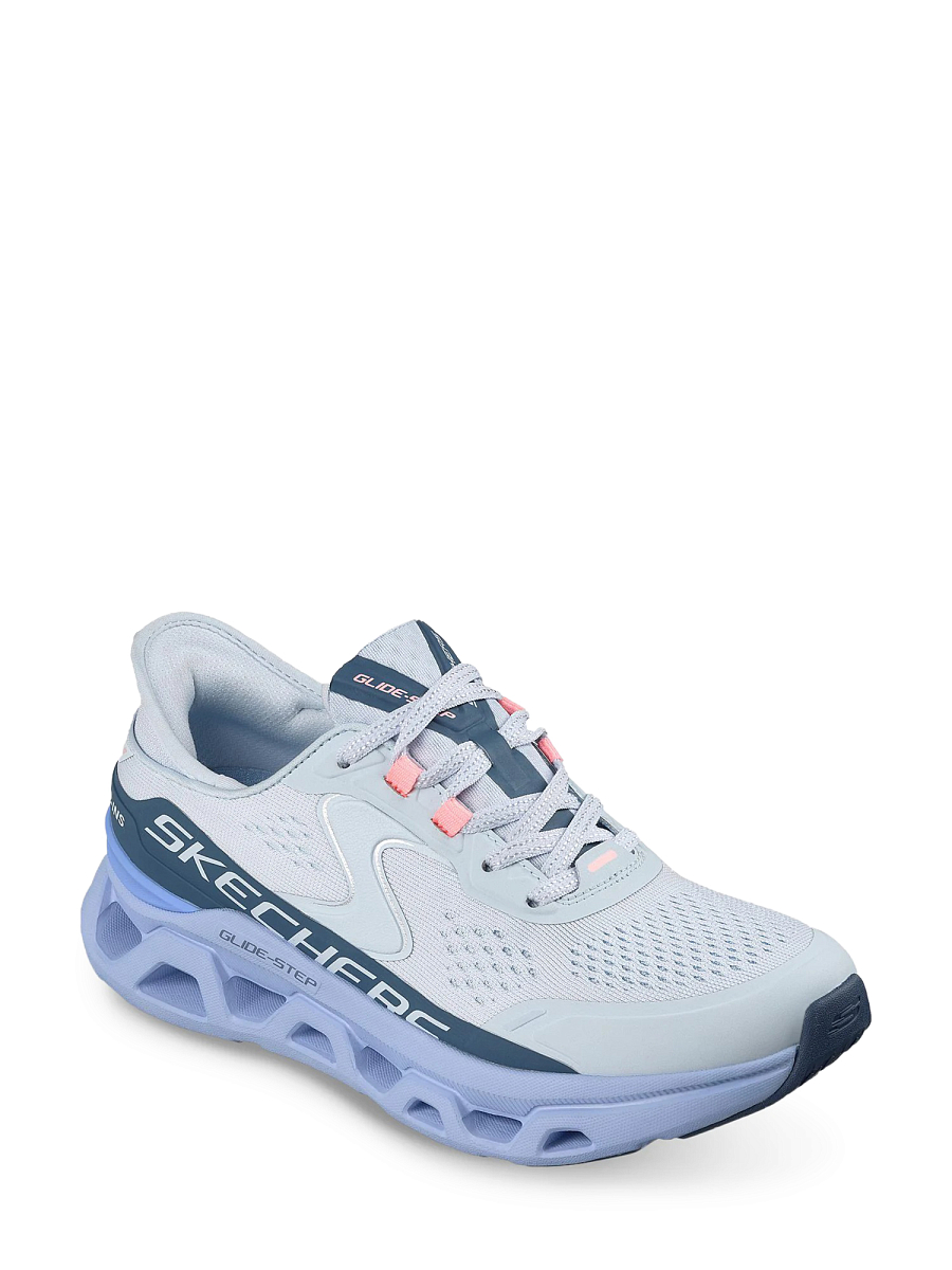 Opplev maksimal komfort og enkel bruk med Skechers Slip-ins Glide-Step Altus i en frisk blåfarge. Denne lette og moderne damesneakeren er designet for en aktiv hverdag, der du enkelt kan gli rett inn i skoen uten å bruke hendene. Det smarte Slip-ins-designet kombinert med Heel Pillow gir en stabil og trygg passform som holder foten godt på plass gjennom hele dagen. Overdelen i Stretch Fit mesh former seg etter foten og sørger for god pusteevne, samtidig som de justerbare lissene gir et fleksibelt og personlig tilpasset uttrykk.