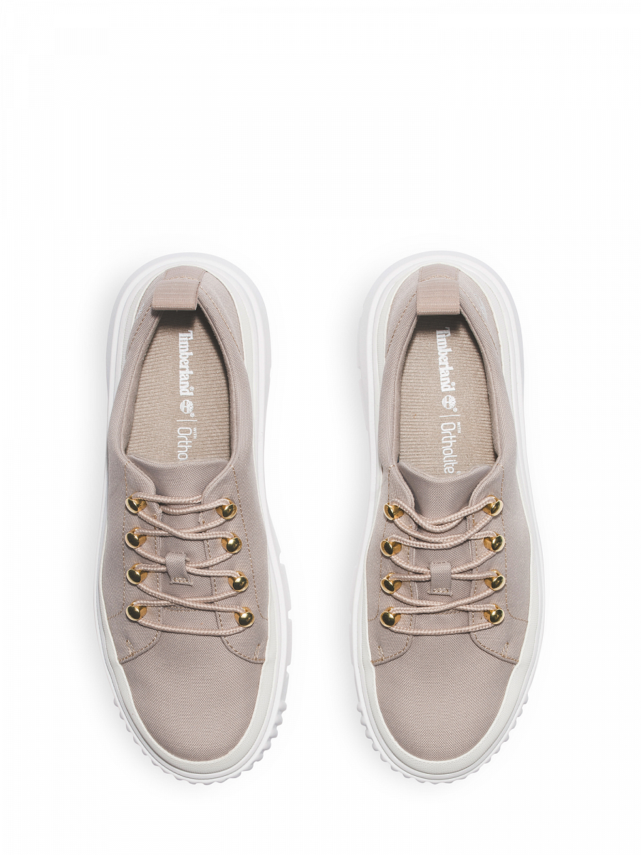 Timberland Damesko - Greyfield ReCanvas Oxford er laget med ReCanvas lerret. Dette spesifikke lerretet er faktisk laget av 70% organisk bomull og 30% resirkulert PET, og tilbyr dermed et høykvalitets, lett, slitesterkt og pustende miljøansvarlig stoff. Denne skoen er et must for sommersesongen. Fall for sine gyldne maljer som bringer femininitet. Fôret er også i ReBOTL- stoff, oppnådd med resirkulerte plastflasker. Dette paret Timberland Women's Trainers har en OrthoLite memory foam-innersåle som holder deg tørr hele dagen. I tillegg er denne komfortable modellen utsmykket med en EVA-skummellomsåle som gir komfort, fleksibilitet og støtdemping. Yttersålen laget av slitesterk og gripende gummi.
