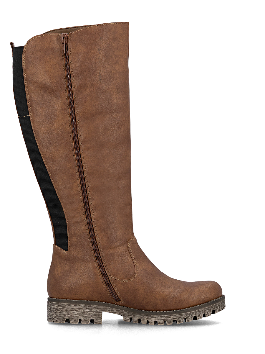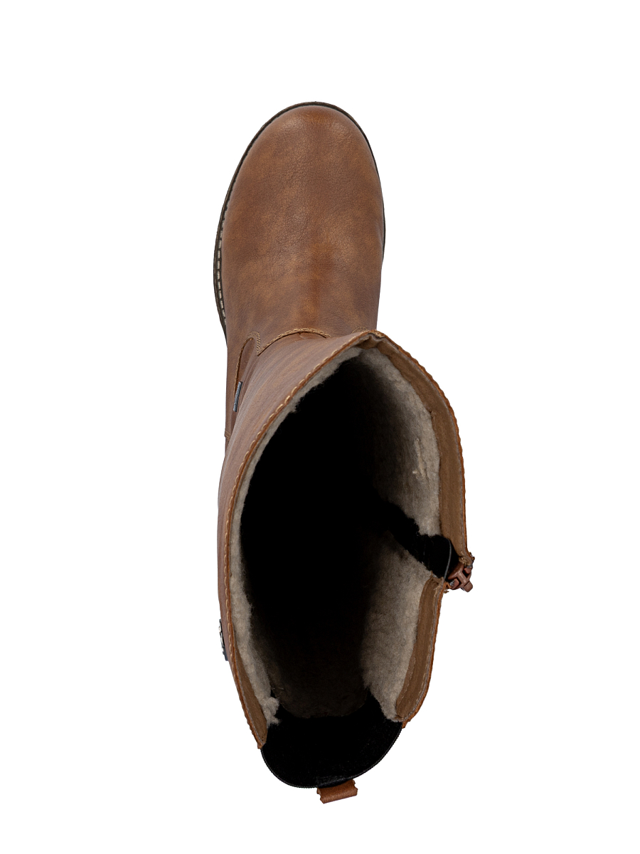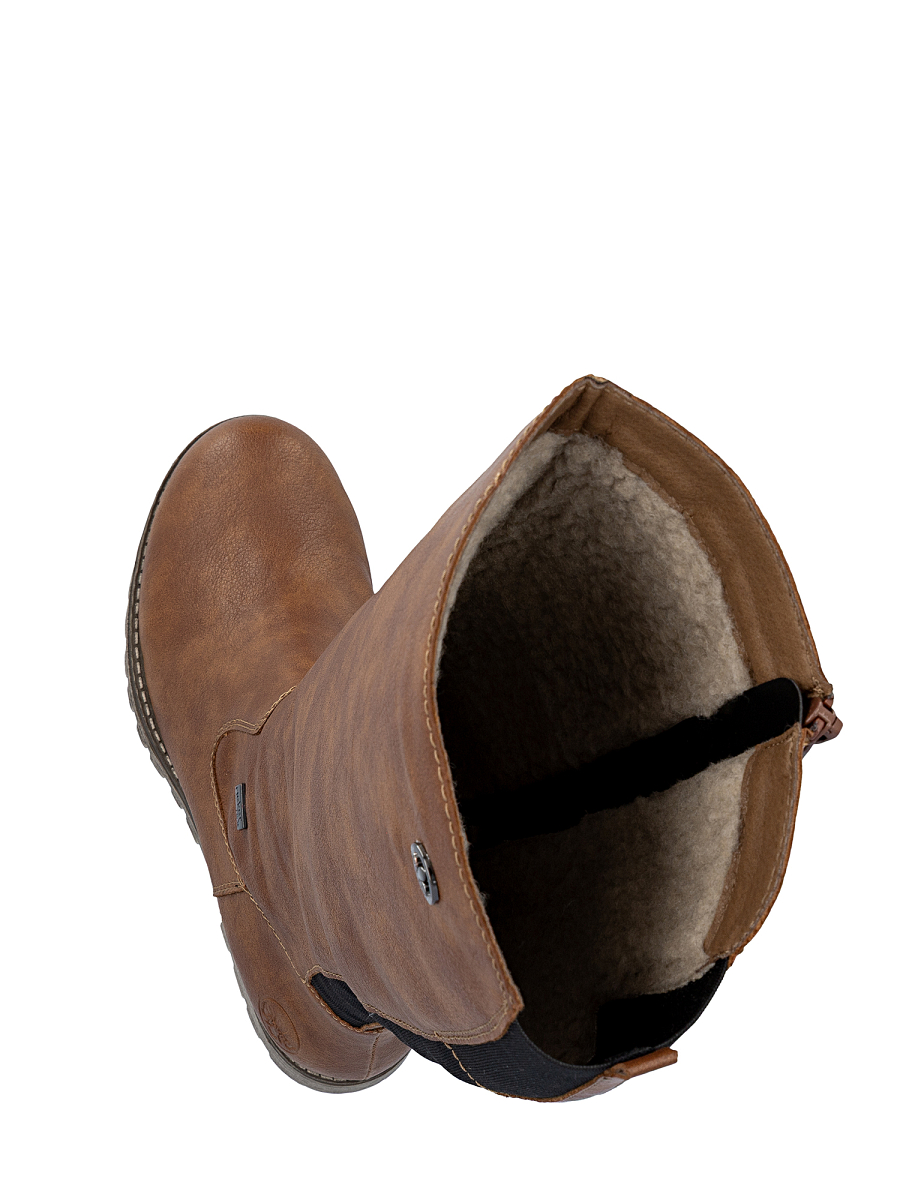 Rieker Merida er en stilig og funksjonell støvlett som gir både varme og komfort på kalde vinterdager. Den varme brune overdelen er laget i slitesterkt syntetisk materiale kombinert med elastisk tekstil bak, som gir fleksibilitet og en behagelig passform rundt leggen. Den pustende og vanntette RiekerTEX-membranen beskytter mot fuktighet, mens det myke ullfôret i virgin wool holder føttene varme hele dagen. Den innvendige glidelåsen gjør skoen enkel å ta av og på, og Antistress-sålen sørger for letthet, støtdemping og fleksibilitet ved hvert steg. En perfekt kombinasjon av klassisk design, praktiske detaljer og vinterkomfort.
