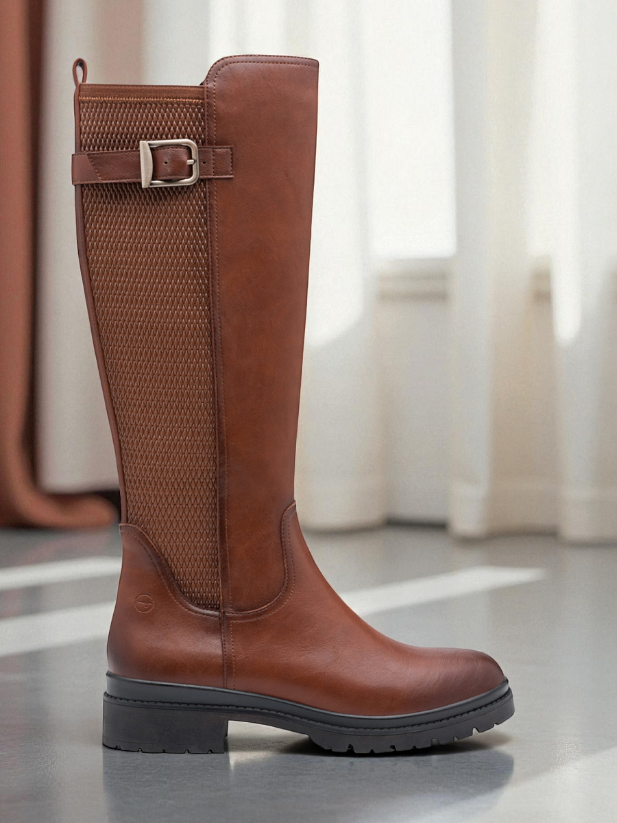 Tamaris Narella Zip Boot kombinerer moderne design med førsteklasses komfort. Den har et mykt Touch-It memory foam-innlegg som former seg etter foten og gir en behagelig passform gjennom hele dagen. Den solide platåsålen på 45 mm gir stabilitet og et trendy uttrykk, mens den avrundede tåen og det slanke skaftet gir et feminint preg. En praktisk glidelås på innsiden gjør støvelen enkel å ta av og på, og elastiske tekstilpaneler sørger for fleksibilitet og god bevegelse. Det myke innerfôret i tekstil og syntet holder føttene komfortable, mens den slitesterke yttersålen gir godt grep på ulike underlag.