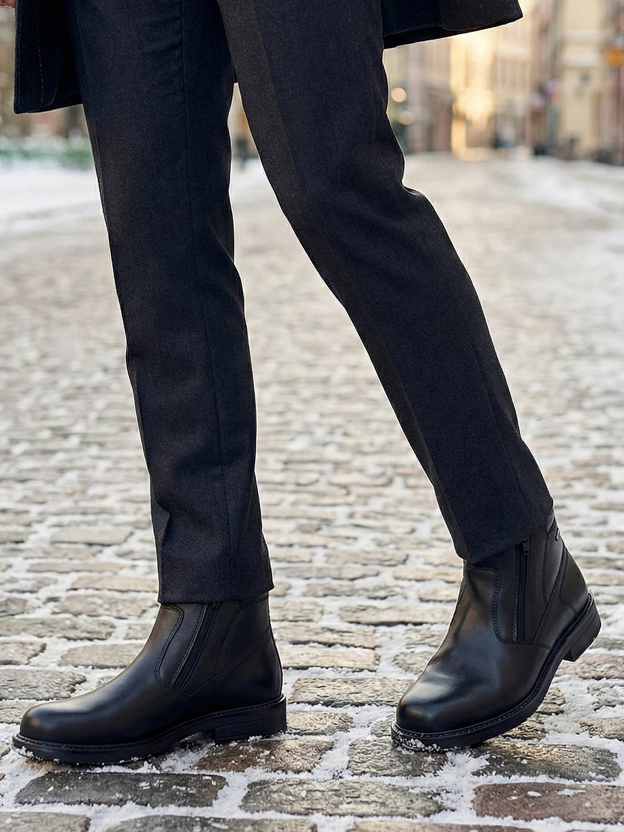 Apex Boreas Winter Boot er en klassisk og funksjonell vintersko til herre, laget i mykt nappaskinn i sort som gir et stilrent uttrykk og god slitestyrke. Modellen har varmende teddyfôr som holder føttene komfortable på kalde dager, og en vannavstøtende UltraTex-membran som beskytter mot fukt og snø. Den solide yttersålen med godt mønster gir stabilt grep på glatte underlag, mens glidelås på begge sider gjør skoen enkel å ta av og på. En komfortabel og praktisk vintersko som passer både til hverdags og penere anledninger i vinterhalvåret.
