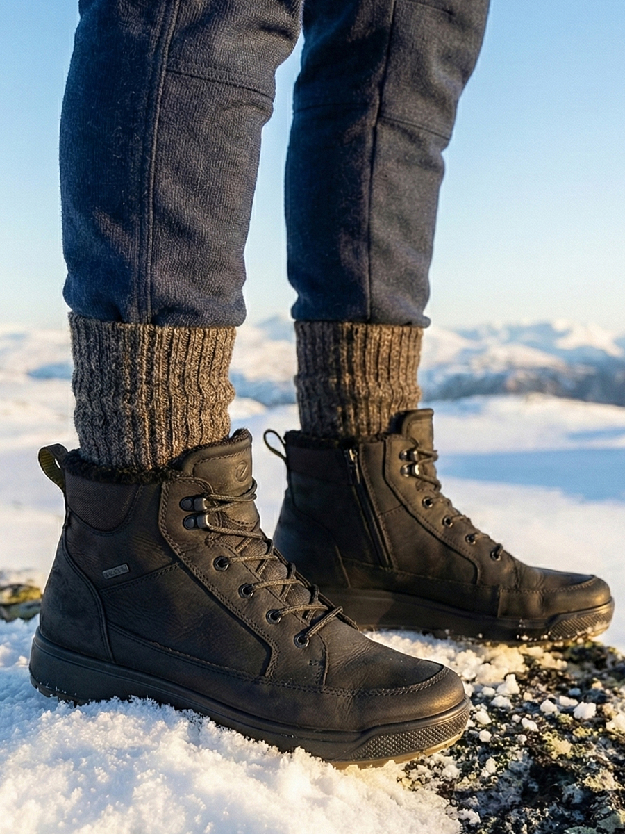 Denne utgaven av ECCO SOFT 7 TRED er en trendy og komfortabel boot som er som skapt for kaldt vær. Den har en nyansefarget yttersåle og GORE-TEX-teknologi som bidrar til å holde føttene tørre. I tillegg til at den er laget med varmt fôr, har denne modellen snøring med kroker og lissehull som gjør det mulig å bruke dem med pløsen ned for litt ekstra snert. Her får du praktisk nytteverdi og gatestil i like store doser.
