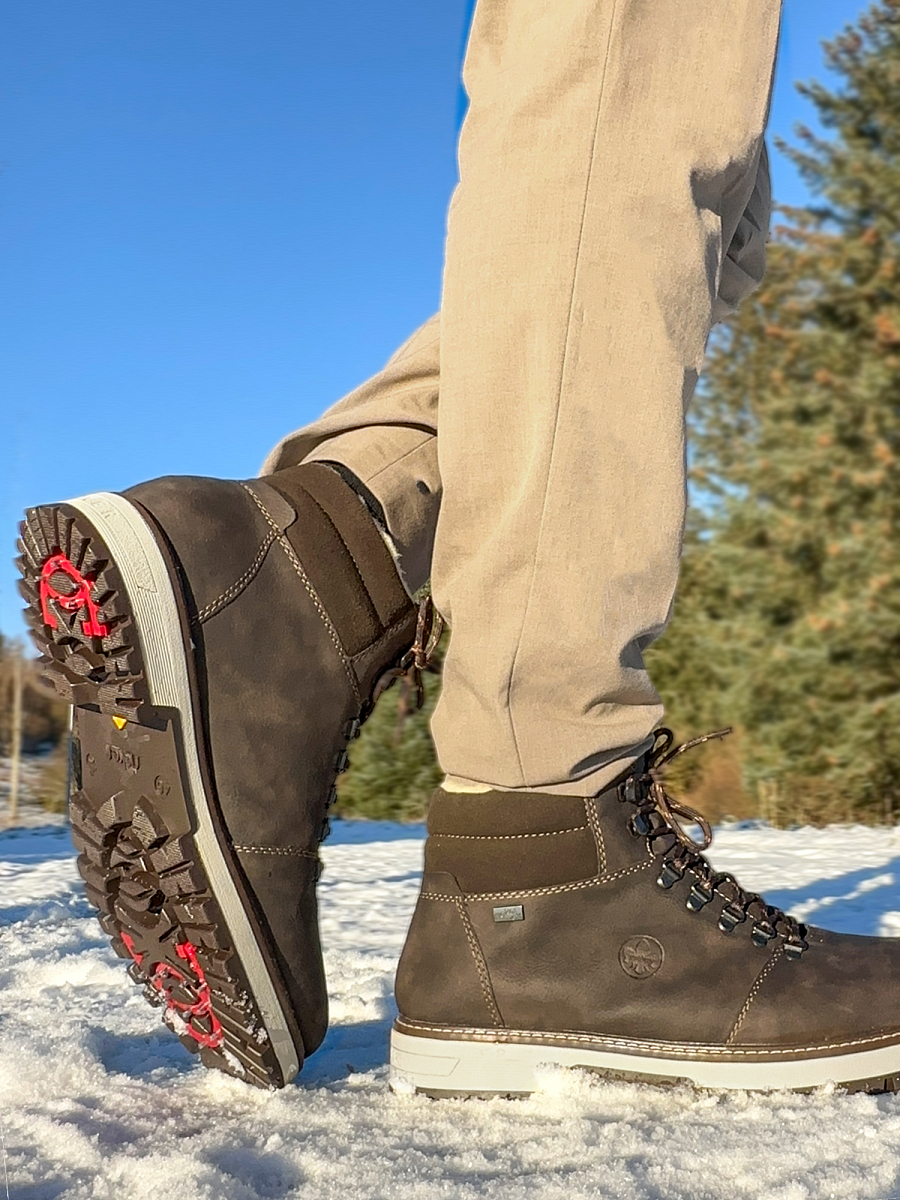 Vintersko med uttagbare brodder fra Rieker. Disse kaffebrune vinterskoene fra Rieker kombinerer kul design med den beste komforten og høy funksjonalitet. Den fôrede sålen er utstyrt med Rieker Grip-teknologi brodder på undersiden, som vil gjøre det lett for deg å gå på isete underlag. Du vipper rett og slett ut broddene ved behov. Takket være saueullfôret med spesiell vannavstøtende TEX-teknologi passer de både til ærend i byen og i snøen. Komfortbredden G 1/2 gir deg mer plass i skoen Se alle piggsko her