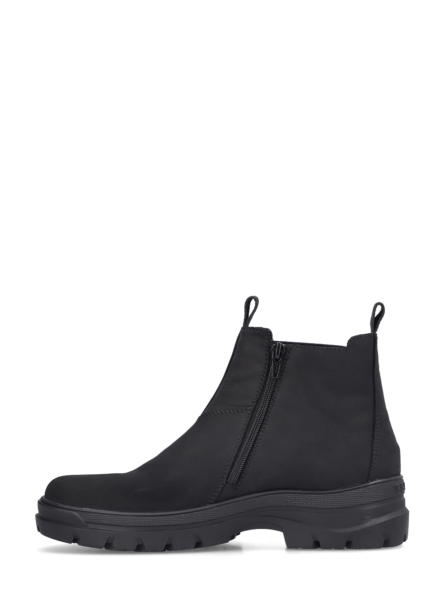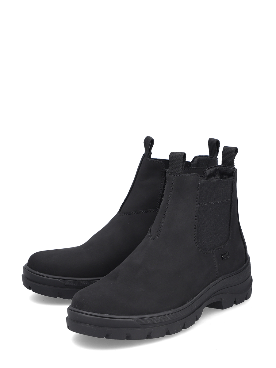Rieker Lodge Winter Boots er en funksjonell ankelstøvlett i skinn for herre som kombinerer værbeskyttelse, varme og sikkert grep. RiekerTEX-membranen holder fukt ute, mens fôr i ekte virgin ull gir jevn varme på kalde dager. Antistress-konstruksjonen gjør skoen lett og dempende, og Rieker Grip-yttersålen har utfellbare brodder som vippes ut når det er glatt og inn igjen når du går inn. Modellen er enkel å ta av og på med innvendig glidelås, og elastisk strikk på utsiden gir fleksibel passform. Komfortbredde (G) gir ekstra rom i forfoten. Uttakbar innersåle gjør lufting og utskifting enkelt. Skafthøyde ca. 13 cm, hælhøyde ca. 48 mm.