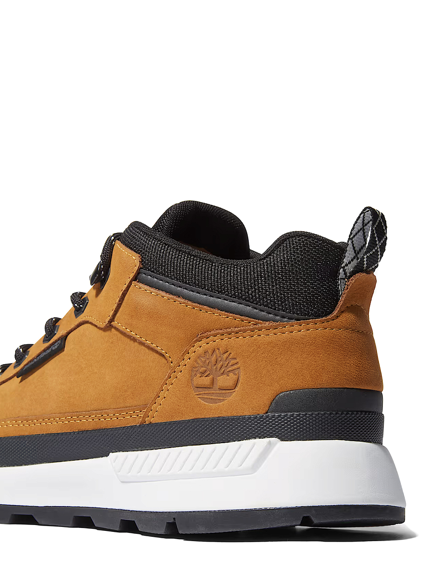 Timberland Field Trekker Trainer kombinerer moderne stil med robust funksjonalitet – perfekt for aktive dager både i byen og ute i naturen. Overdelen er laget av Premium Timberland® Leather og ReBOTL™-stoff som inneholder minst 50 % resirkulert plast, noe som gjør skoen både slitesterk og mer bærekraftig. Den lette OrthoLite®-innersålen gir langvarig komfort og støtte, mens EVA-mellomsålen demper hvert steg. Defender Repellent Systems®-behandling beskytter mot vann og skitt, og den kraftige gummisålen gir godt grep på variert underlag.