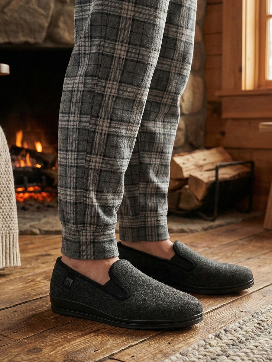 Rohde Filton er en komfortabel og praktisk herretøffel utviklet for deg som ønsker stabilitet, enkel påtaking og god støtte i hverdagen. Denne modellen er laget i slitesterk filt som gir en lun og behagelig følelse rundt foten, samtidig som materialet puster godt. Den faste hælkappen gir ekstra støtte og gjør tøffelen godt egnet også for lengre bruk innendørs, enten hjemme eller på jobb.