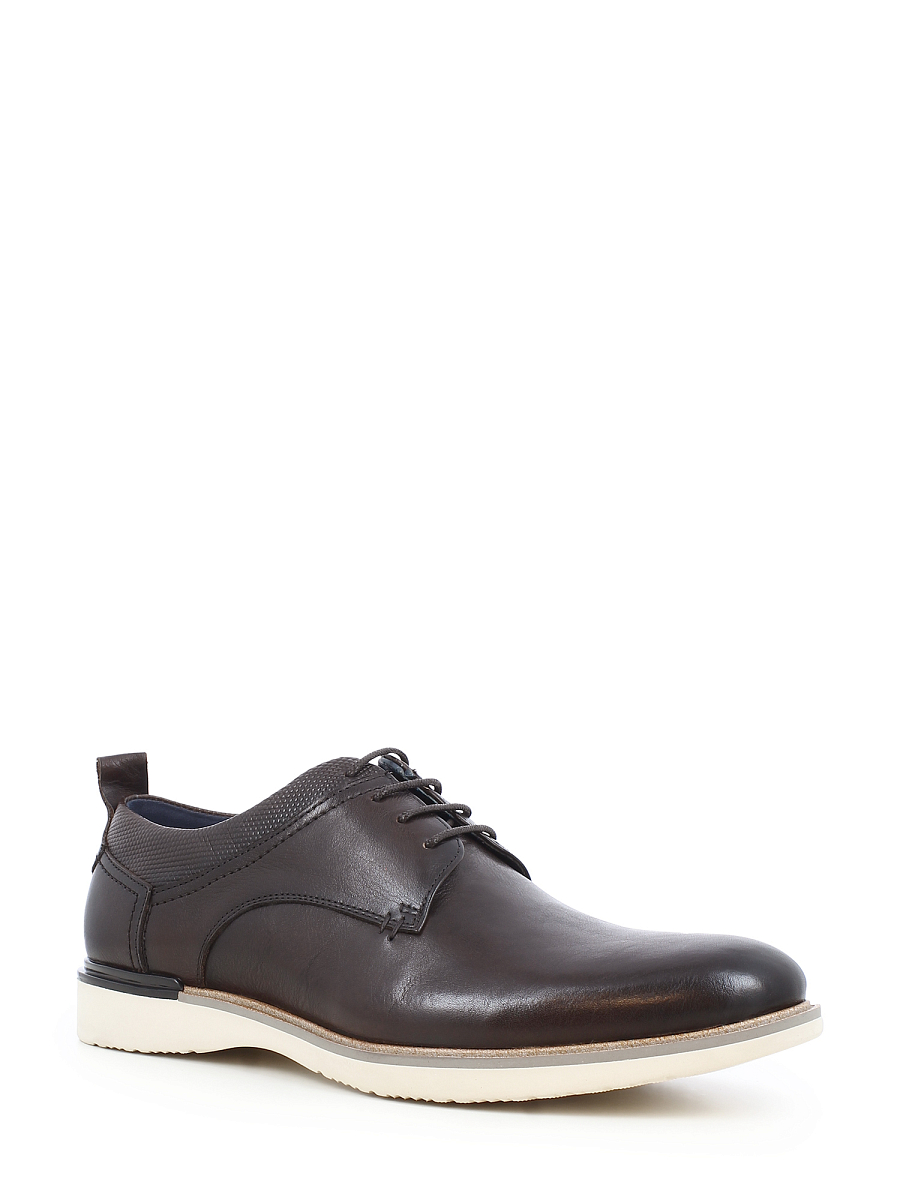Rugged Gear Mason Leather Shoe er en elegant snøresko til herre i mørkebrunt skinn, designet for å kombinere klassisk stil med moderne komfort. Overdelen i ekte skinn gir et sofistikert uttrykk og former seg naturlig etter foten over tid. Den lyse gummisålen skaper en fin kontrast og gir samtidig godt grep på glatte underlag. Innersiden er foret med pustende tekstil som sørger for behagelig bruk gjennom hele dagen, mens den myke innersålen gir ekstra komfort. En stilren og anvendelig skinnsko som passer både til dress og til mer avslappede antrekk.