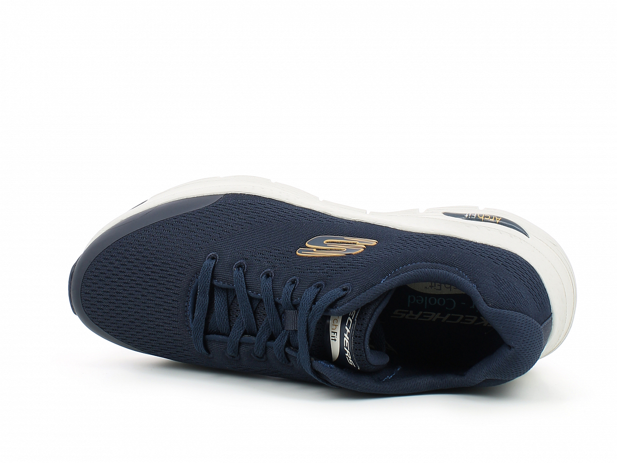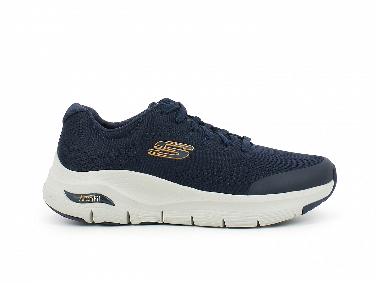 Sporty og komfortabel sneakers fra Skechers i atletisk teknisk meshstoff og glatt syntetisk materiale. Skoen har snøring slik at skoen lett kan tilpasses foten og løs uttakbar støttende Arch-Fit polstret innersåle. Kanten og pløsen er polstret. Innvendig har den mykt tekstilfor. Arch Fit innesålesystem med støtte for fotbuen, som er anbefalt av ortopeder. Kontrastfarget yttersåle med detaljer rundt tåpartiet. Fleksibel gummiyttersåle med godt grep i underlaget.