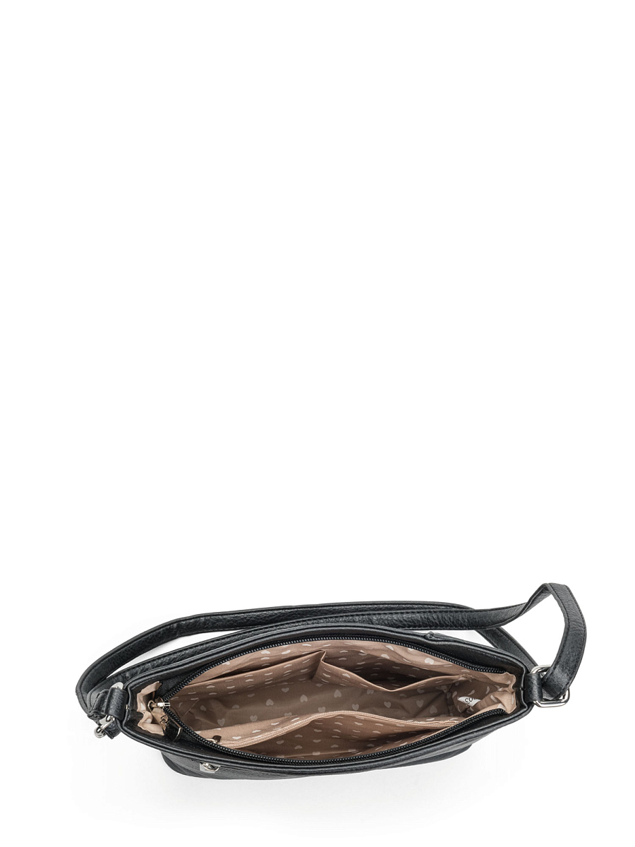 Romslig og godt dekorert veske i crossover-modell laget av skinnimitasjon med deilig preg, fra Duffy. Fronten er dekorert med to glidelåslommer. Her er det enkelt å holde styr på dingsene dine.